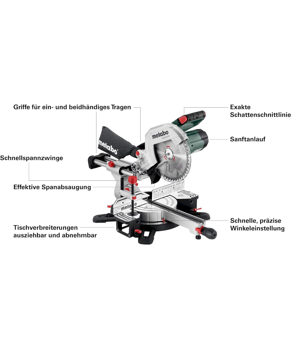 - Große Schnittkapazität durch Zugfunktion für breite Werkstücke