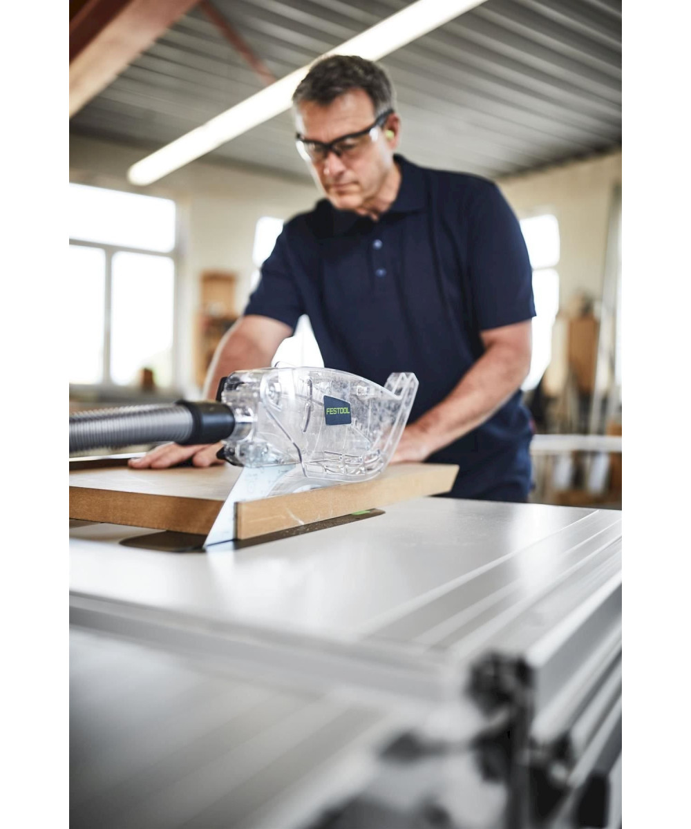 - Gesundheitsschonend: Absaughaube mit CLEANTEC Absaugmuffe für staubarmes Arbeiten und freie Sicht auf das Werkstück.