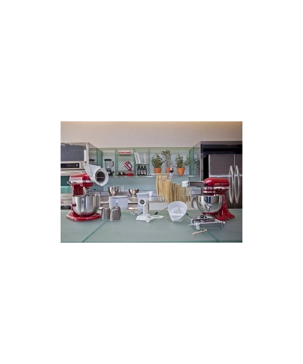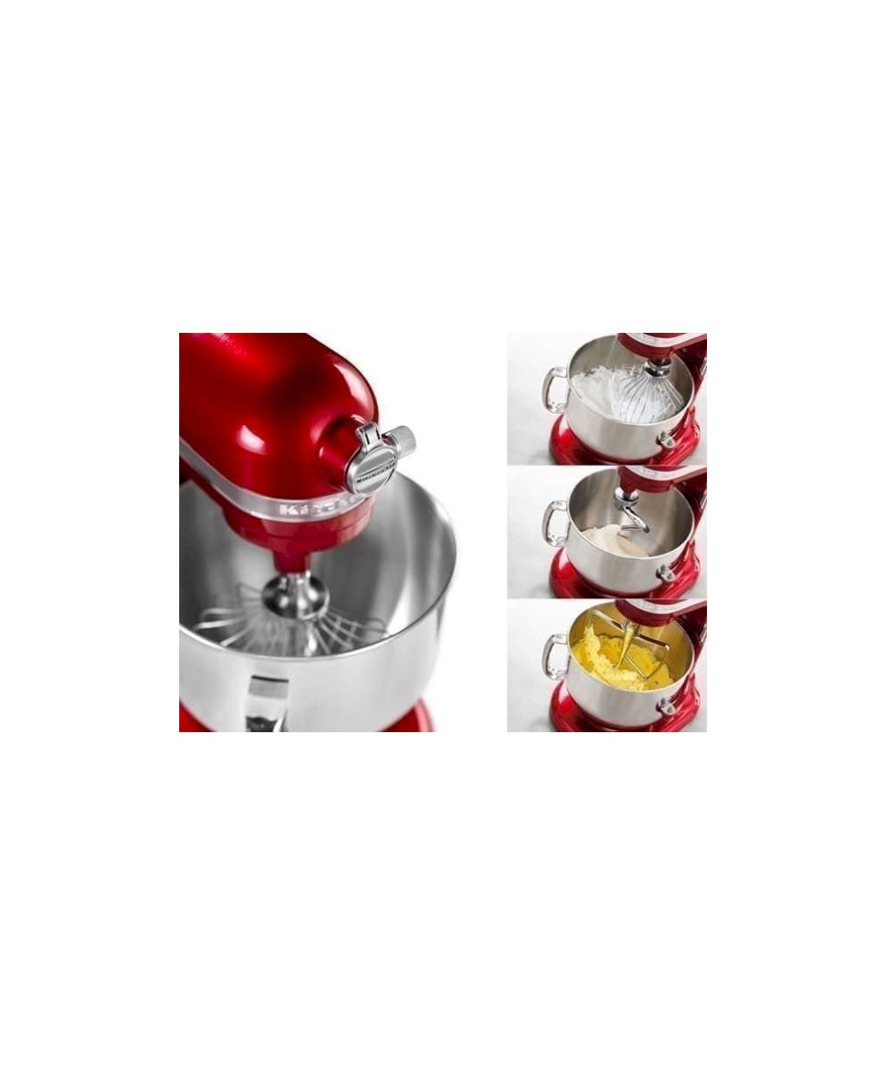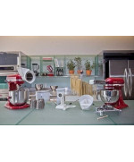 - Lieferumfang: KitchenAid Artisan-Küchenmaschine, 1 x Edelstahlschüssel mit Spritzschutz, 1 x Schneebesen, 1 x Knethaken, 1 x Flachrührer