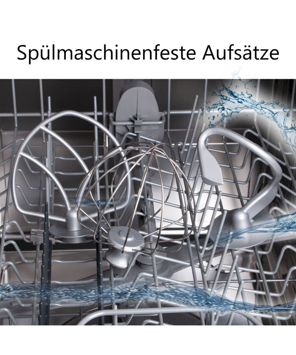 - - Robuste spülmaschinenfeste Metallaufsätze von Edelstahl-Schneebesen, H-Rührbesen und Knethacken