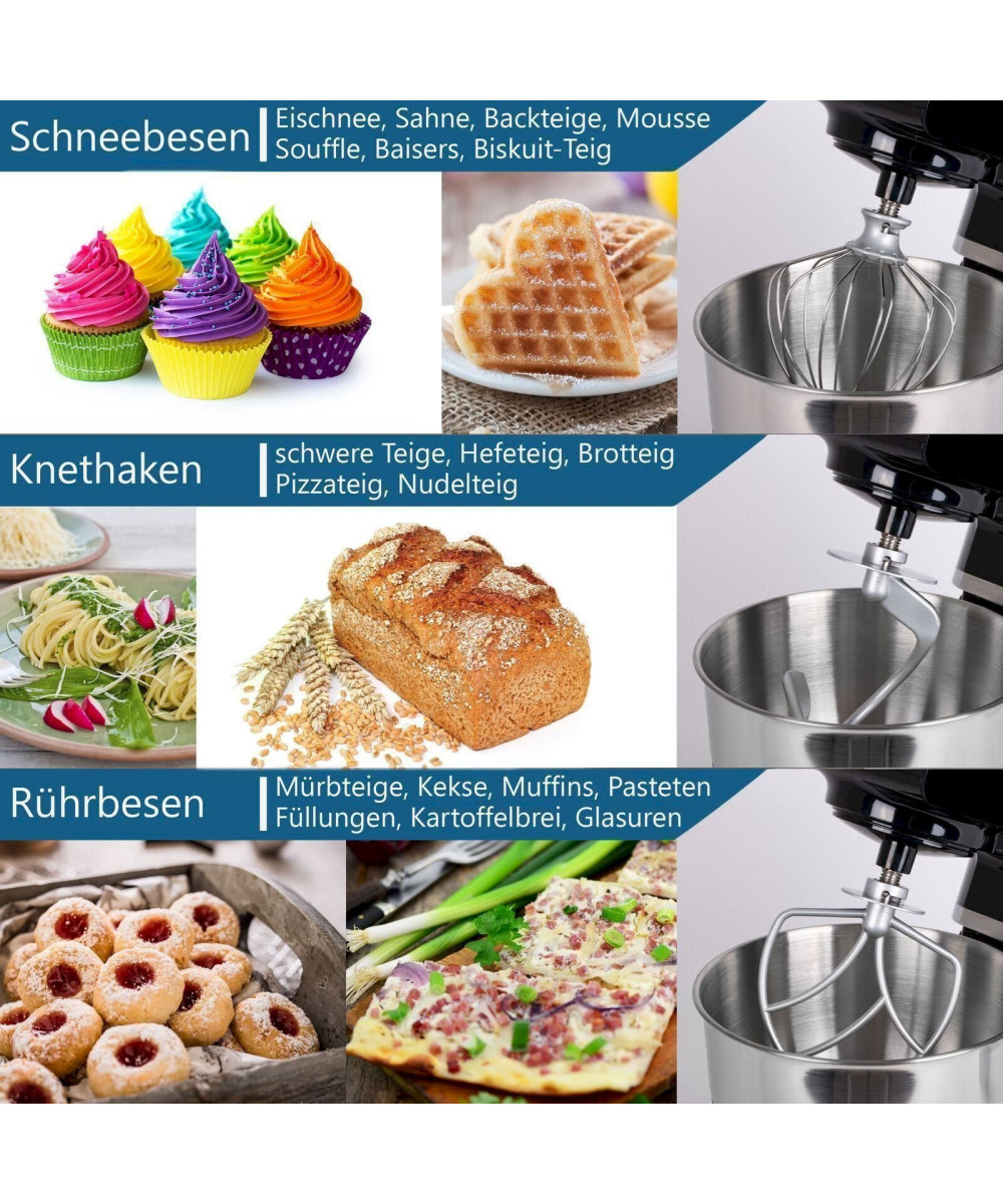 TZS First Austria FA-5259-5 1500W Küchenmaschine 6 L Knetmaschine Teigmaschine Rührmaschine Planetenrührwerk