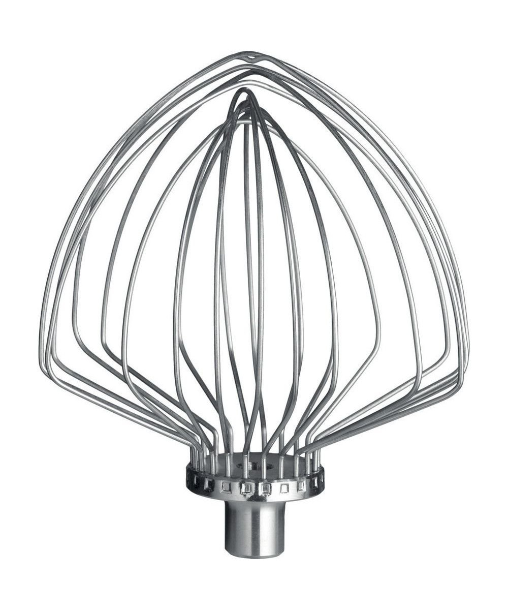 Geben Sie Zutaten ganz unkompliziert bei laufendem Betrieb in die Küchenmaschine. Befestigen Sie dazu einfach die abnehmbare Einfüllschütte an der Vorderseite des Schutzgitters, und fügen Sie Zutaten hinzu, während die Maschine arbeitet. - Schneebesen aus Edelstahl