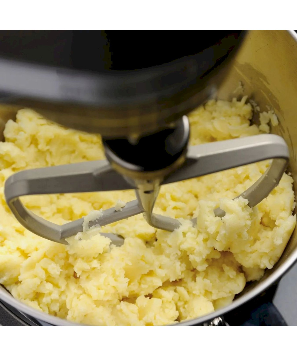 Der Power-Knethaken ist so konzipiert, dass er in jeden Winkel der 6,9 L Schüssel gelangt und so ein gleichmäßiges und gründliches Vermengen ermöglicht. Er besteht aus robustem Edelstahl und kann bedenkenlos in der Spülmaschine gereinigt werden. - Edelstahl-Flachrührer