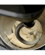 Der Schneebesen besteht aus elf Drähten und ist elliptisch geformt, um das Volumen der Schüssel maximal auszunutzen. Durch die Verwendung von Edelstahl ist er spülmaschinenfest. - Power-Knethaken aus Edelstahl