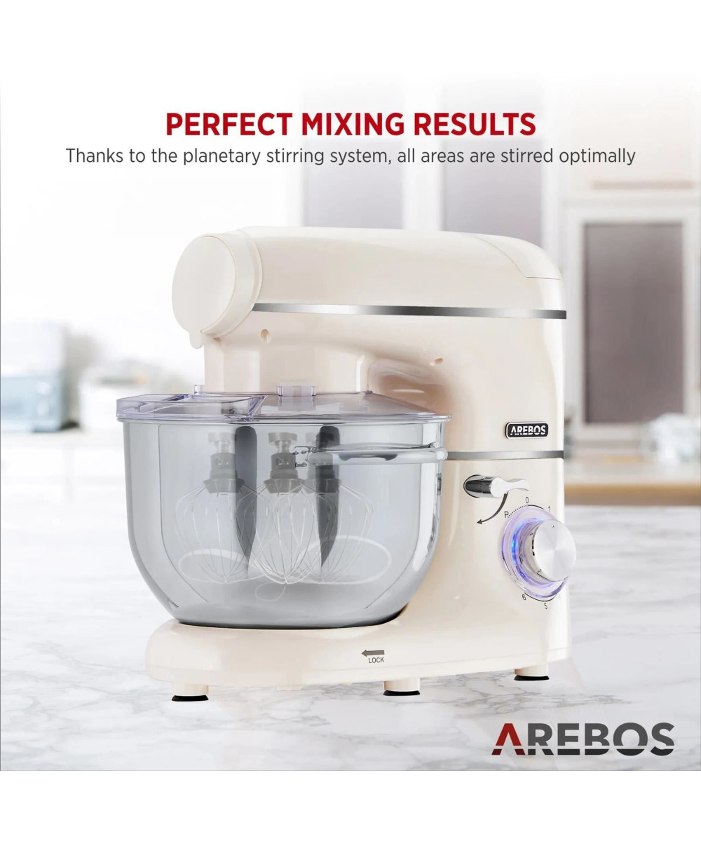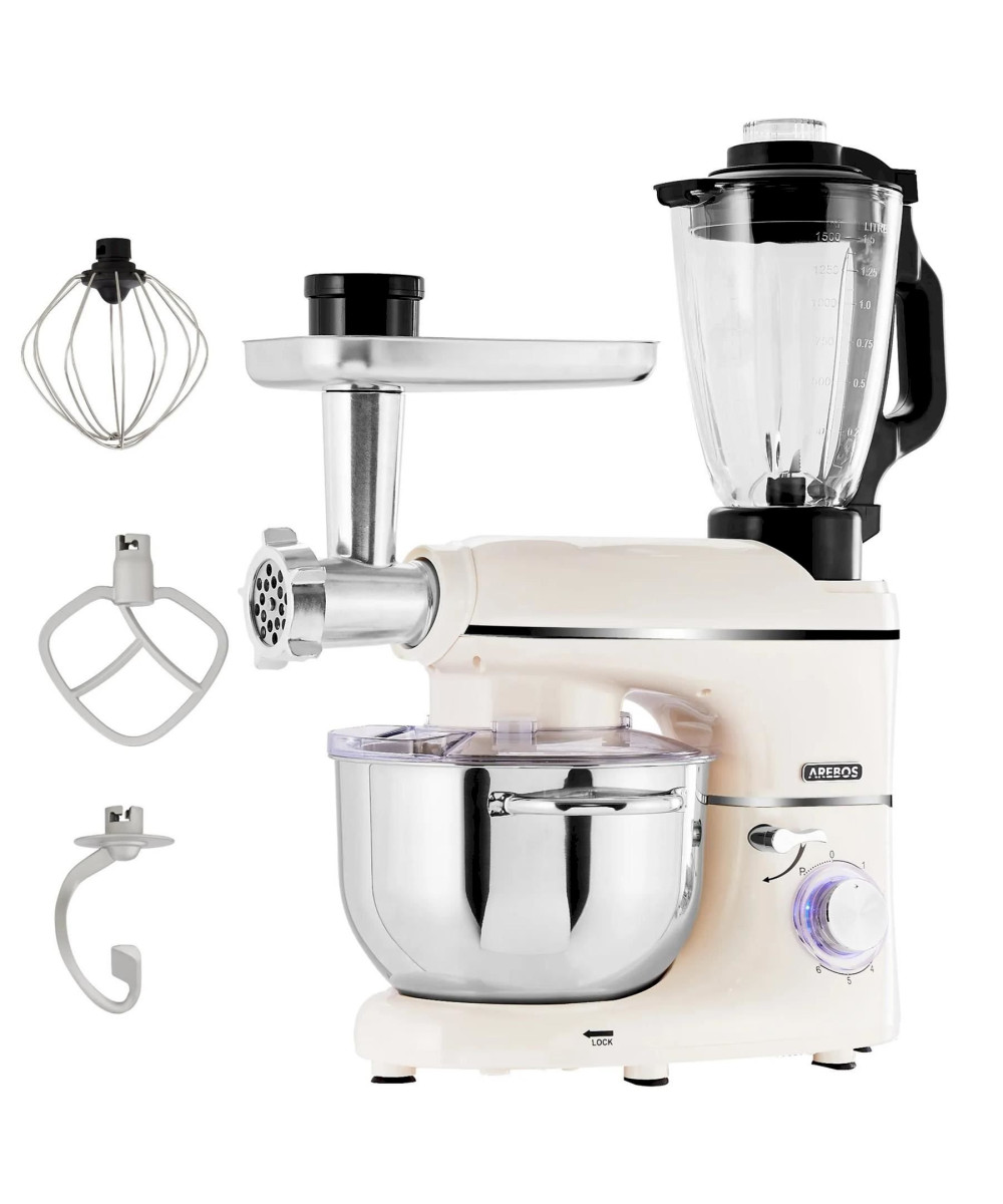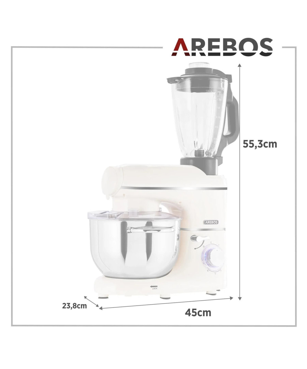 6-in-1 Küchenmaschine 1500W, mit Edelstahl-Schüssel 5,5L + Blender 1,5L, 6 Geschwindigkeiten + Pulsfunktion, creme