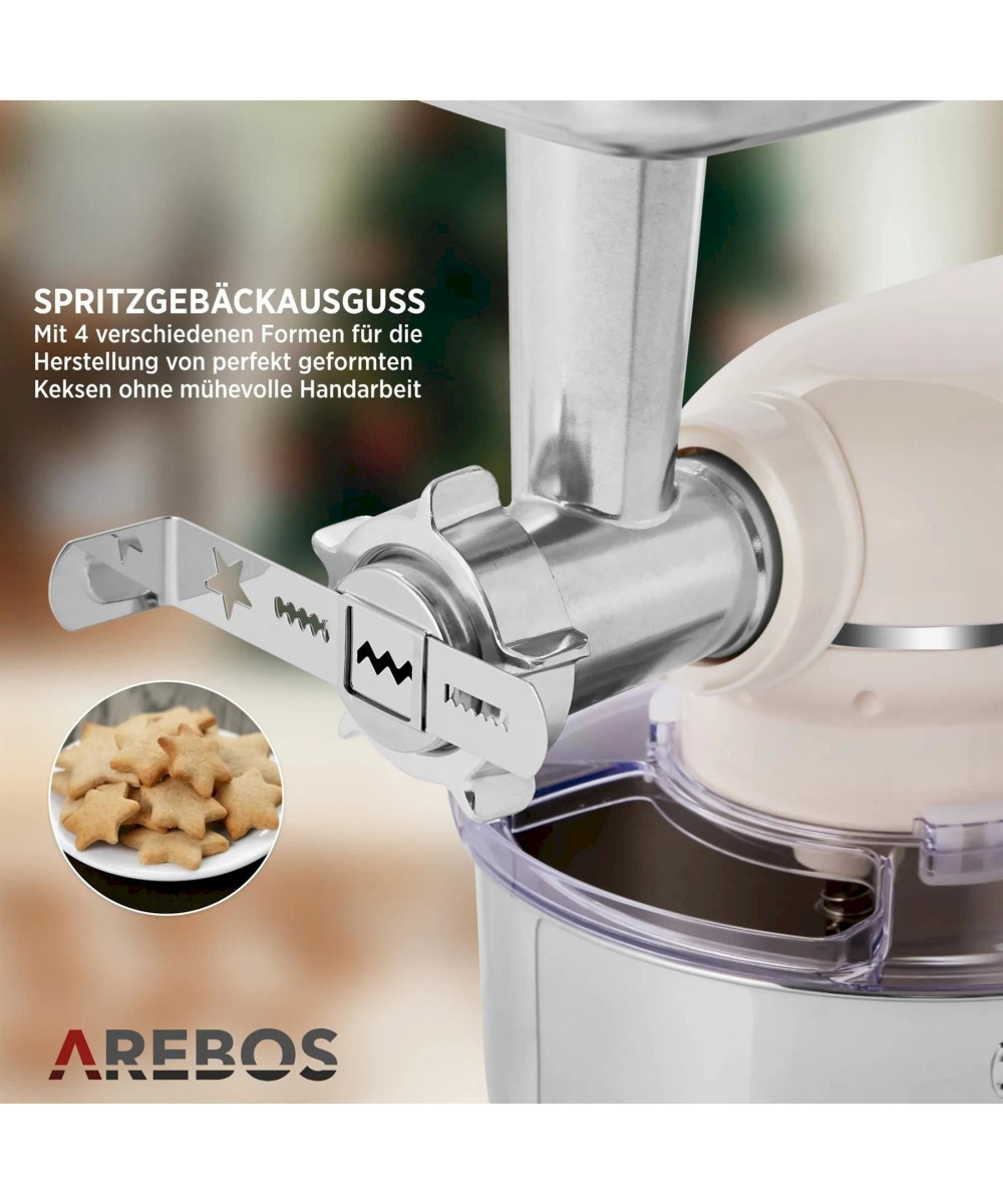 Der ergänzende Spritzgebäckaufsatz aus Edelstahl, mit 4 verschiedenen Formen eignet sich super für die Herstellung von perfekt geformten Keksen ohne mühevolle Handarbeit, Weihnachtsgebäck und vielem mehr. Der Vorsatz wird einfach auf den Fleischwolf gesteckt und losgeht die leckere Plätzchen-, Sand- und Spritzgebäckproduktion. - 6-fache Geschwindigkeitskontrolle