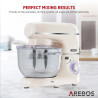 Die Teigknetmaschine besitzt einen starken 1500 Watt-Motor. Die Rührelemente drehen sich um die eigene Achse und gleichzeitig entlang des Schüsselrandes. Dank dem Planetenrührsystem wird das Rührwerkzeug außerhalb des Kreiszentrums bewegt, somit werden alle Bereiche der Masse im Innern des Rührgefäßes gleichmäßig erreicht.
