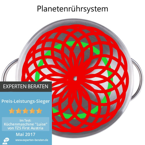 Mit der Küchenmaschine Luise der Qualitätsmarke TZS First Austria holen Sie sich eine robuste langlebige Maschine in Ihre Küche. Oft kommt es vor, dass eine Maschine alles kann, aber nichts richtig. Das richtige Erfüllen der Funktionen ist unerlässlich. Daher ist unser Ziel ein funktionales Küchengerät, einfach zu bedienen und günstig. Mit spülmaschinenfesten Aufsätzen und Rührschüssel ist die Maschine sofort wieder einsatzbereit. Die Aufsätze sind komplett aus Metall, somit existieren keine Kleinteile aus Plastik die abbrechen könnten.