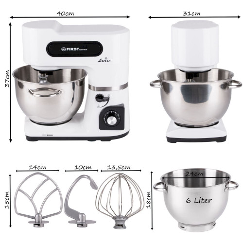 TZS First Austria FA-5259-4 weiß 1500W Küchenmaschine 6 L Knetmaschine Teigmaschine Rührmaschine Planetenrührwerk