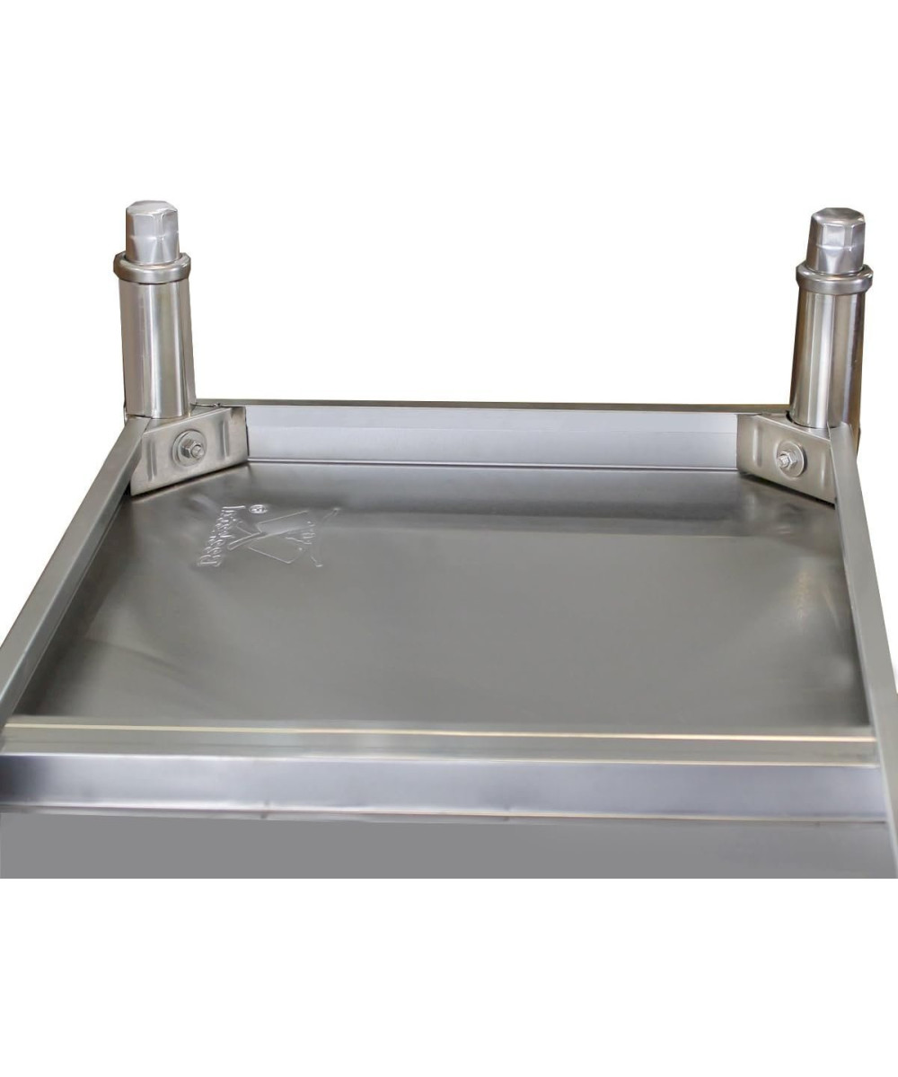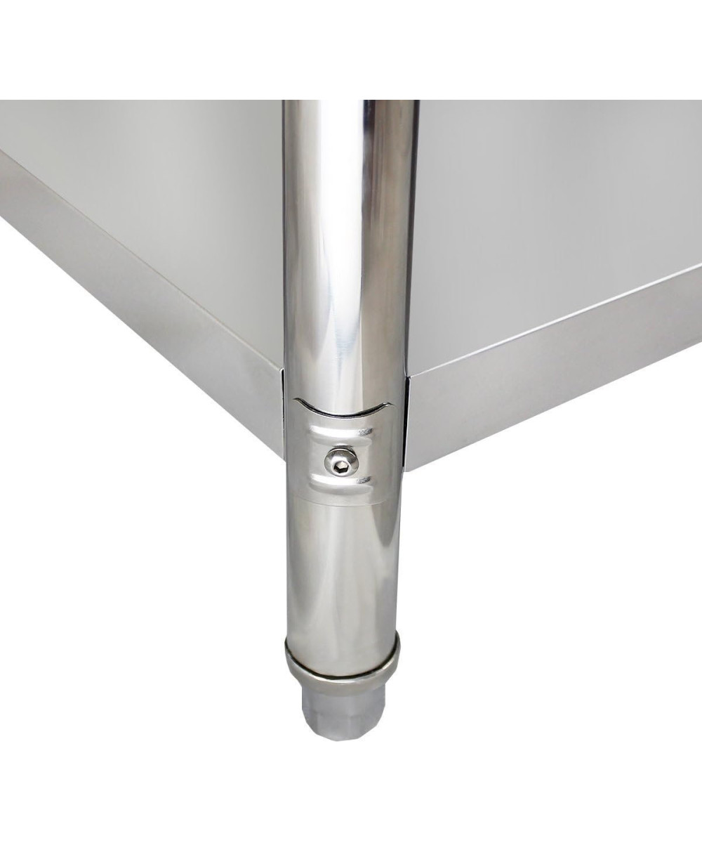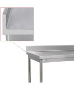 Die Rückseitige Aufkantung verhindert das Lebensmittel hinter den Tisch fallen. Hiermit ist ein sauberes Arbeiten in einer professionell ausgestatteten Küche gewährleistet.
