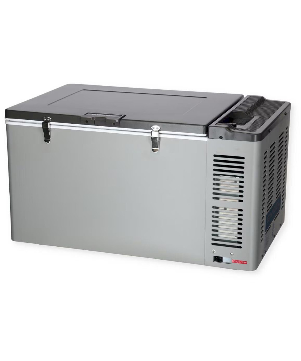 Es geht auch größer. Dieses Kombi- Kühlgerät bietet 30 Liter Kühlraum plus zusätzliche 27 Liter Tiefkühlfach und ist somit ideal für längere Tripps oder Gruppenausflüge. Trotz der Größe wiegt die MD60F-C nur 33kg und verbraucht im Betrieb nur 52 Watt. Das Tiefkühlfach kann per Thermostat bis -18°C eingestellt werden. Das Normalkühlfach wird gleichzeitig immer mitgekühlt.