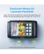 Das Dual-Zonen-Design ermöglicht es, frische und gefrorene Lebensmittel gleichzeitig zu lagern – mit einem maximalen Temperaturunterschied von 22 °C. Präzise Sensoren halten die Temperatur zuverlässig im Bereich von ±1 °C für optimale Frische.