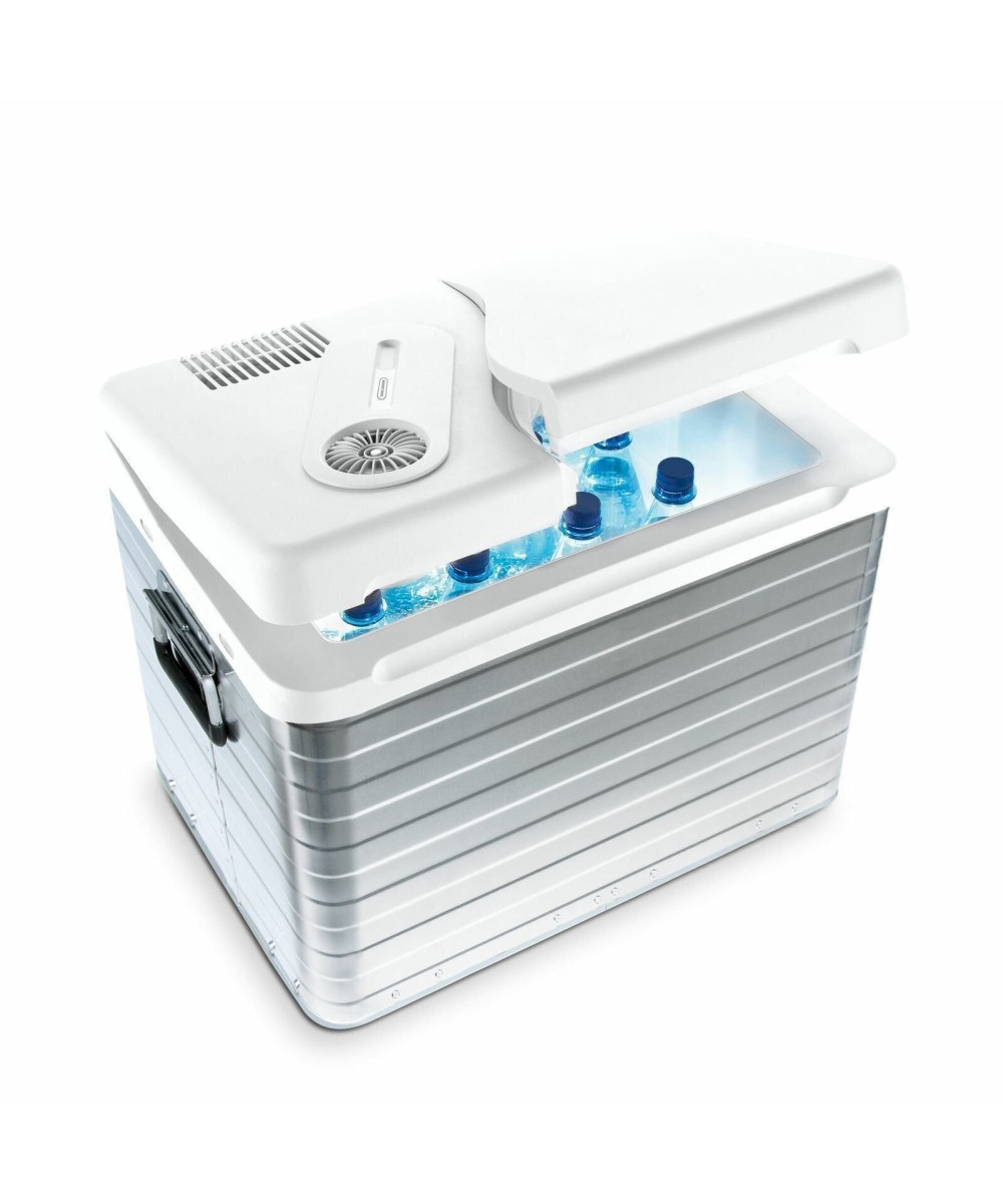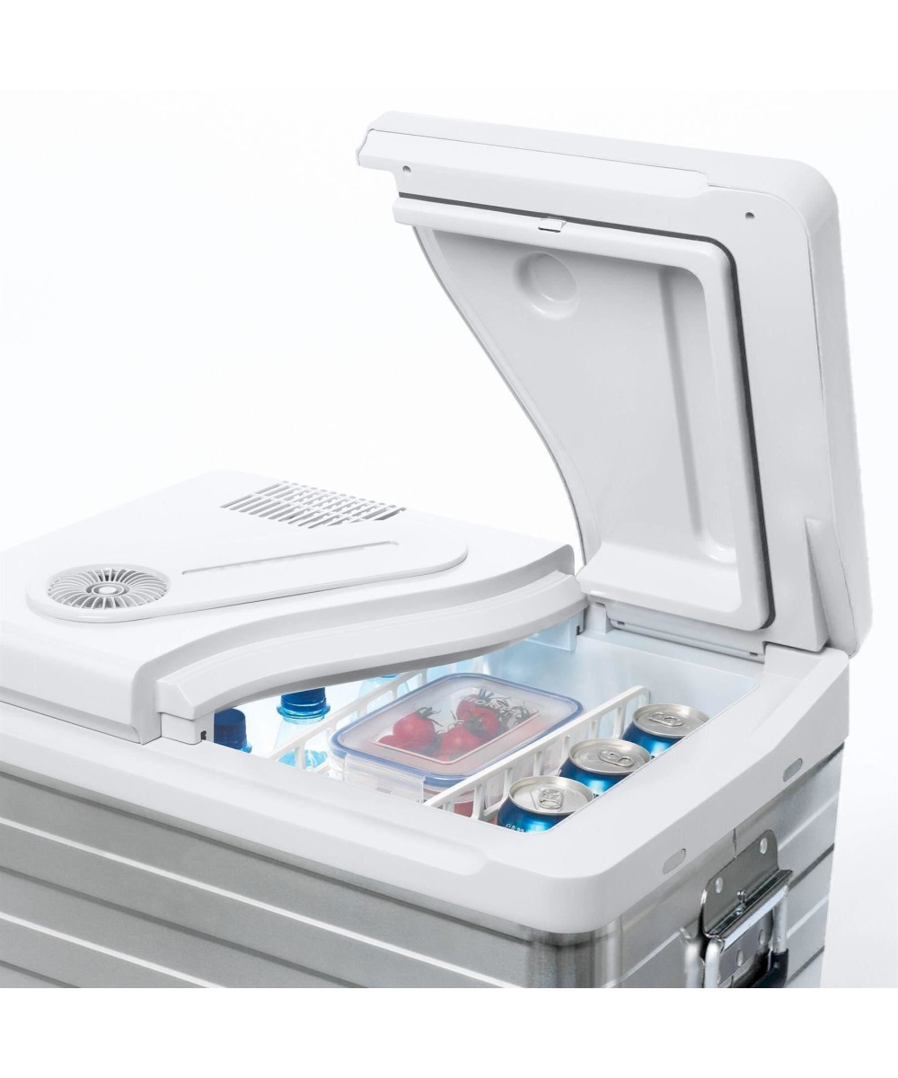 Für die beste Kühlleistung einer thermoelektrischen Kühlbox müssen Sie gar nicht lange suchen: Entscheiden Sie sich für die Mobicool MQ40A AC/DC! Dank der großzügigen Isolierung, dem Doppellüftersystem und dem geteilten Deckel werden kalte Temperaturen schnell und effizient erreicht. Kühlen Sie Ihre Lebensmittel und Getränke unterwegs auf bis zu 20 °C unter Umgebungstemperatur! Die Außenhülle aus Aluminium ist nicht nur elegant sondern auch langlebig. Die einklappbaren Griffe sparen Platz, wenn sie nicht gebraucht werden, und sorgen für optimale Transporteigenschaften. Zudem gibt es ein praktisches Fach im Deckel, in dem Sie die Kabel aufbewahren können. So finden Sie sie beim nächsten Gebrauch problemlos wieder.