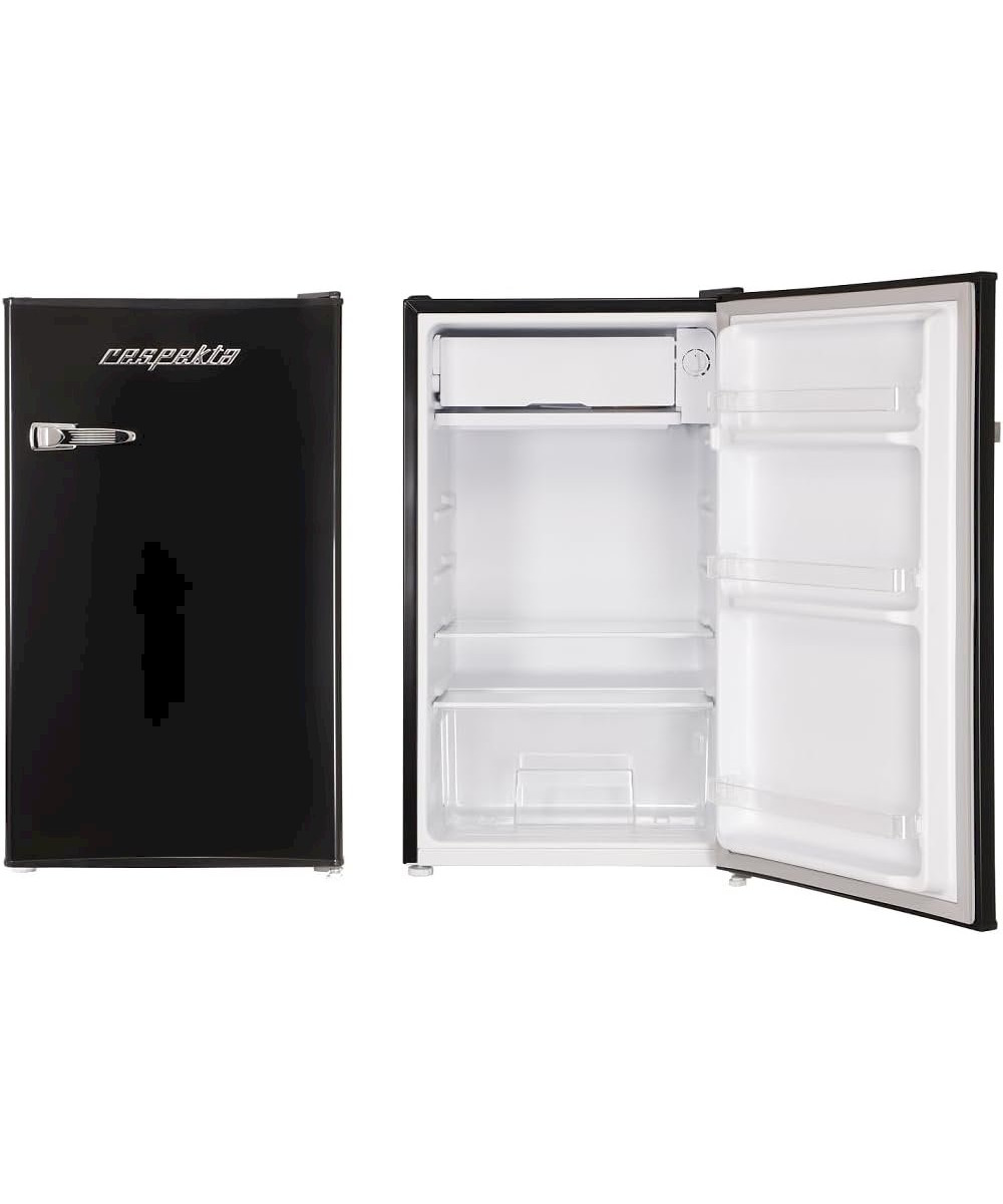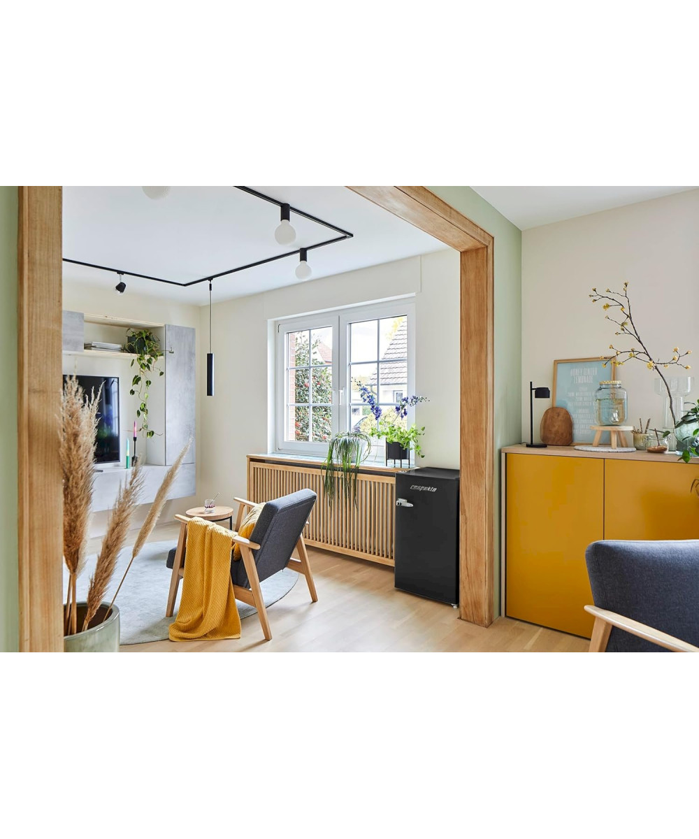VINTAGE DESIGN: Der freistehende Kühlschrank mit Gefrierfach im Retro-Stildesigned & ist durch das edle Schwarz ein Highlight in jedem Raum! Er hat ein 180 cm langes Kabel & höhenverstellbare Füße