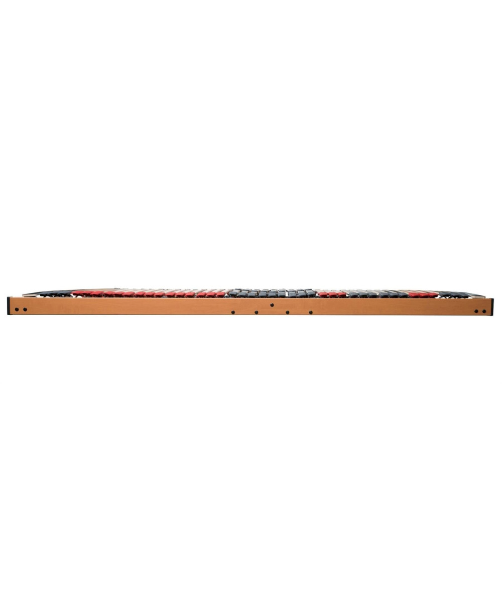 Der elektrisch verstellbare Lattenrost Rhodos EcoMove besitzt 44 Federholzleisten. Die Leisten sind mehrfach verleimt und lagern holmüberdeckend in Triokautschukkappen. Der körpergerechte Liegekomfort des Federholzrahmens wird durch 9 Härtegradeinstellungen unterstützt. Der Mittelgurt garantiert eine optimale Gewichtsverteilung. Der Rahmen ist mit pflegeleichtem Kirschdekor ummantelt und wurde vom TÜV geprüft und zertifiziert.