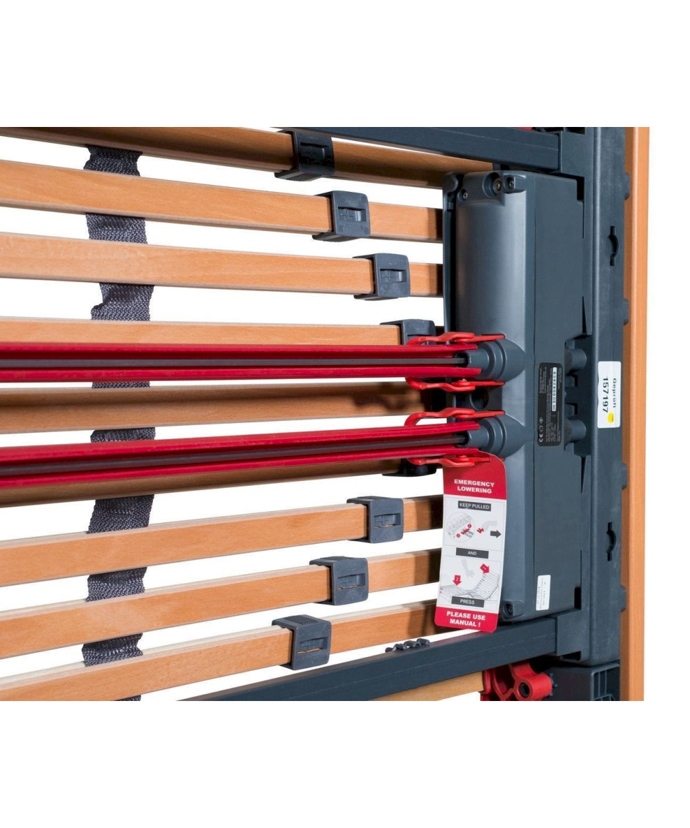 Die zwei voneinander unabhängigen Motoren werden mit einem Sicherheitshandschalter einzeln oder zusammen verstellt. Die Motoren sind geräuscharm und bärenstark. Der Lattenrost besitzt zudem eine Notabsenkung.