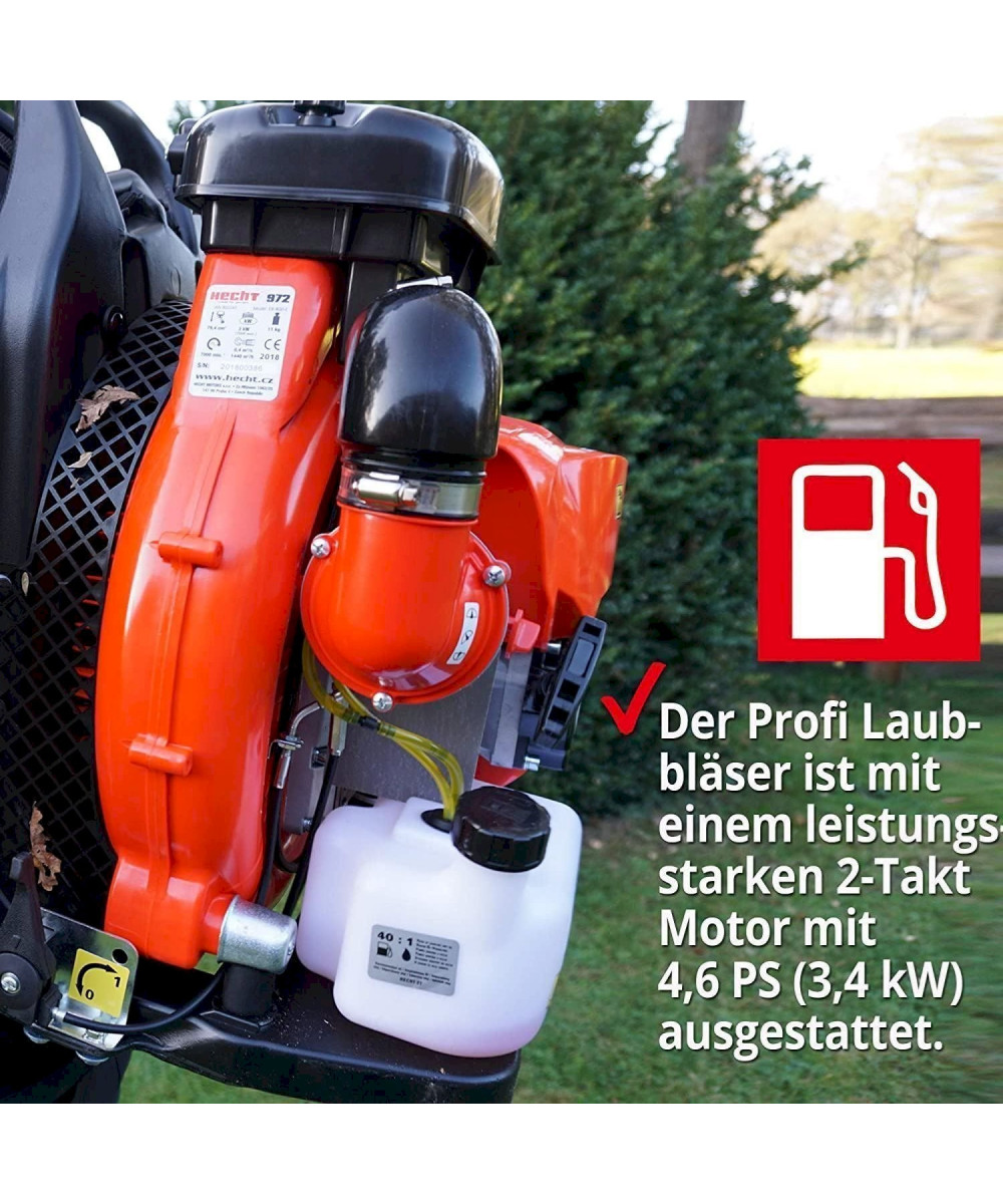 Der Hecht 972 ist ein benzinbetriebener Profi Laubbläser . Er ist für den Einsatz auf dem Rücken ausgelegt. Herbstlaub, aber auch Abfall, Baustoffreste, Müll und Schüttgut werden schnell und zuverlässig an die richtige Stelle gebracht. Für die nötige Leistung sorgt der kraftvolle Zweitakt-Verbrennungsmotor, der durch seinen starken Luftstrom auch große Mengen bewegt.