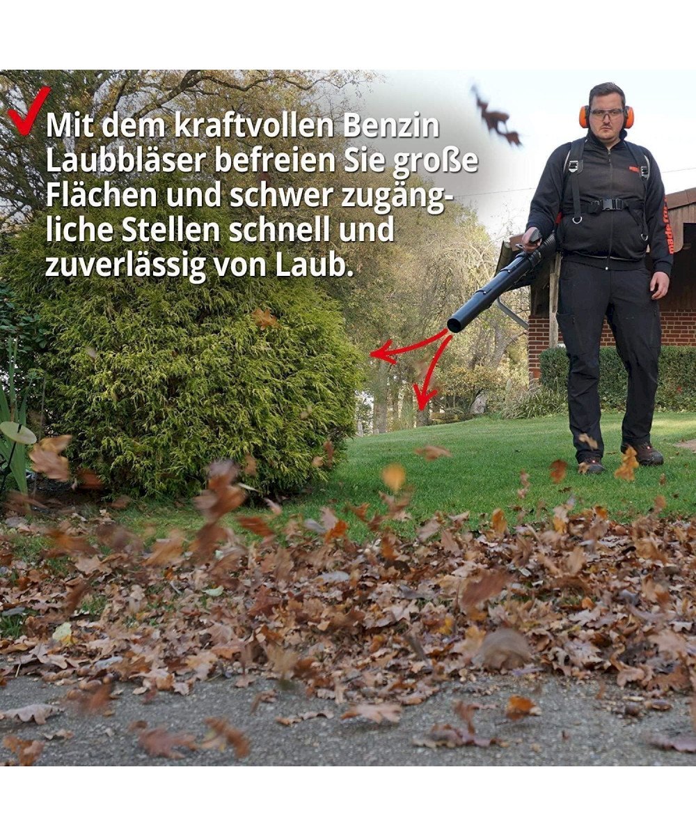 - Leistungsstarker 4,6 PS (3,4 kW) Profi-Benzin-Rückenlaubbläser