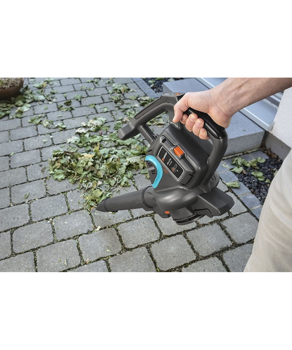 Der kraftvolle und einfach zu bedienende GARDENA Akku-Gartensauger-/Bläser PowerJet Li-40 entfernt mit einer Blasgeschwindigkeit von bis zu 320 km/h oder einer Saugleistung von 160 l/s schnell und mühelos Schmutz, Laub und Grasschnitt auf dem Grundstück, ganz ohne Bücken und Kraftaufwand. Ein intuitives Tastenfeld am Griff sorgt für höchsten Bedienkomfort. Die Leistung kann stufenlos reguliert werden, passend für die jede Anwendung. Akku und Ladegeräte sind im Set enthalten. Angetrieben wird das Gerät von einem pflegeleichten GARDENA System Akku mit 40 V* und 4,2 Ah. Dieser lässt sich jederzeit und ohne Memory-Effekt wieder aufladen. *Die maximale Ausgangsspannung ohne Last beträgt 40 V, die Nominalspannung 36 V.