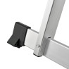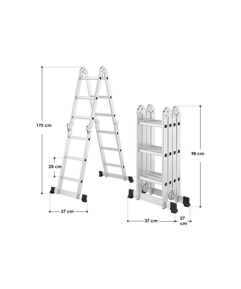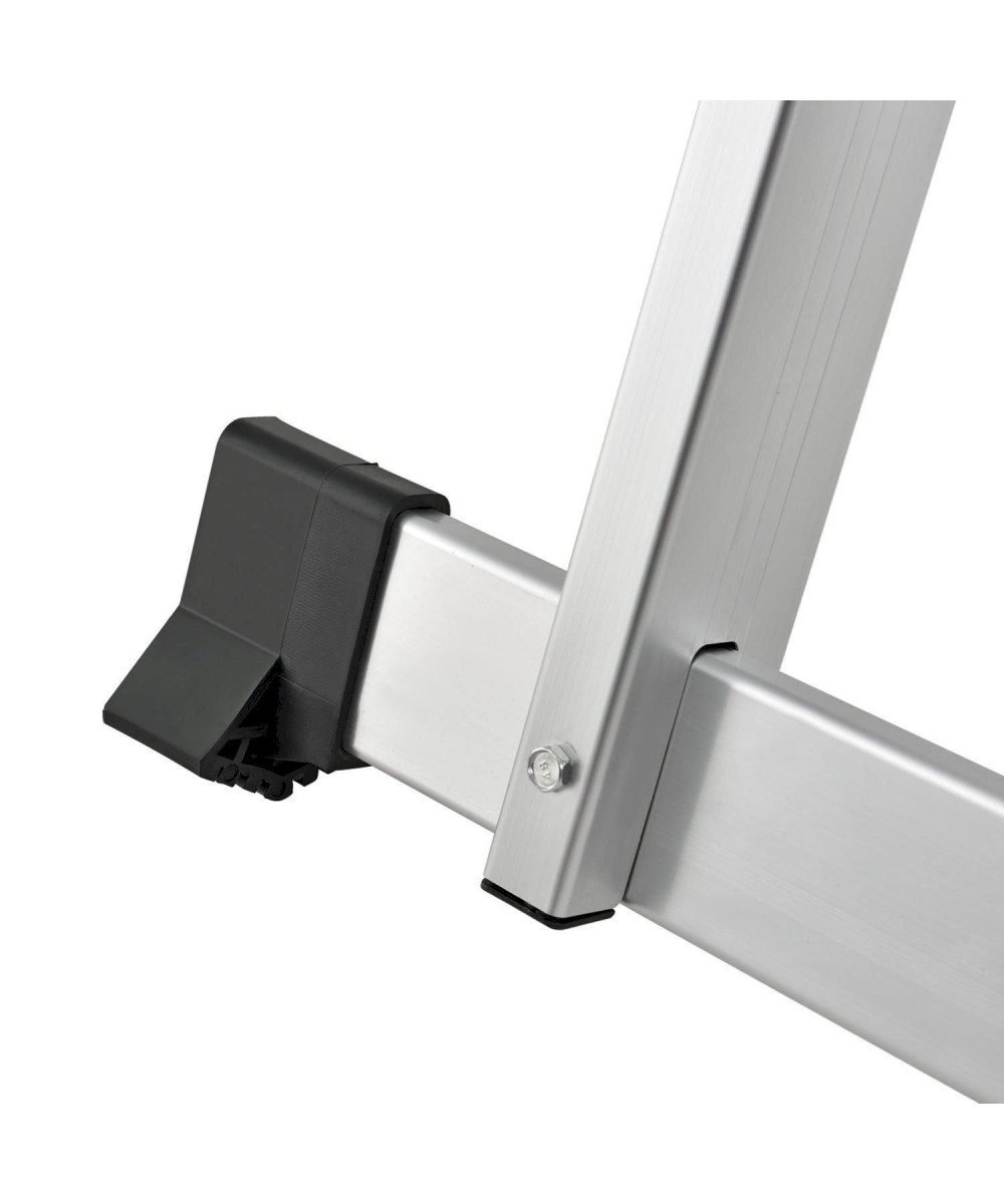 Die Gelenkleiter trägt bis zu 150 kg Gewicht. Gummierte Standfüße gewährleisten einen festen Stand. Breite Treppenstufen mit Anti-Rutschprofil verhindern das Abrutschen und sorgen für einen sicheren Halt. Das Gelenksystem mit Sicherheitsverriegelung verleiht der Multifunktionsleiter Stabilität.