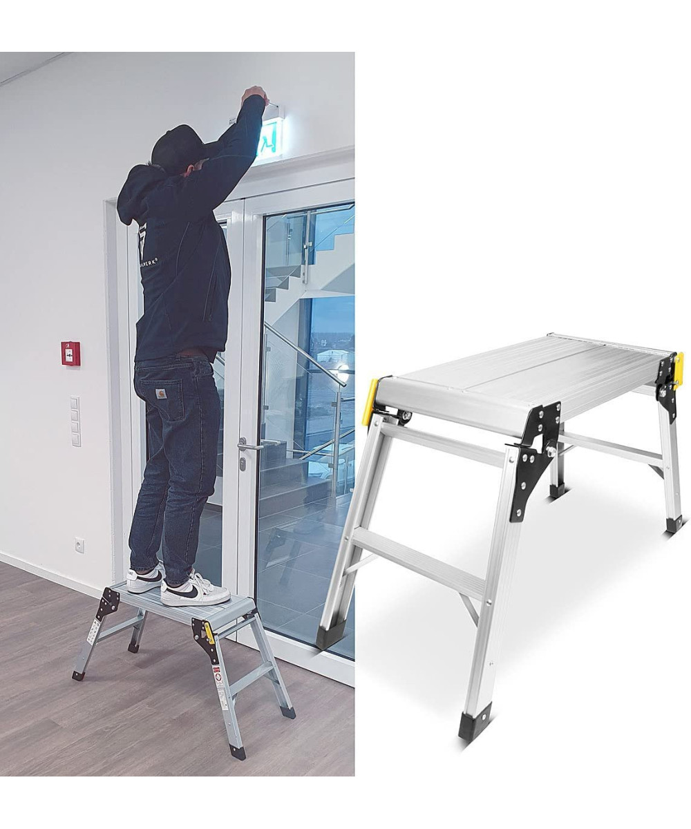 - Die vielseitige STAHLWERK Mini Arbeitsplattform eignet sich mit einer Tragkraft von 150 kg und einer Standhöhe von 48 cm ideal für Bau- und Renovierungsarbeiten.