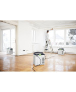 Der Luftreiniger kommt im praktischen, kompakten Systainer³ Format. Durch sein geringes Gewicht kannst du ihn mobil wie stationär nutzen. Er ist einfach bedienbar, in zwei Stufen regulierbar und eine Warnlampe macht auf den erforderlichen Filterwechsel aufmerksam. Zudem hast du flexible Einsatzmöglichkeiten: Durch die praktische Deckenaufhängung (Zubehör) ist er in der Werkstatt sicher platziert. Auf der Baustelle lässt sich der Luftreiniger in eine Staubschutzwand integrieren. Und für größere Räume lassen sich mehrere SYS-AIR in Reihe schalten. -