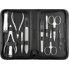Das Nägelset beinhaltet folgende Instrumente: Nagelschere, Hautschere, Glasnagelfeile, Nagelfeile, 2 Fingernagelzwicker, 2 Nagelzangen, 2 Pinzetten, 2 Nagelhautschieber