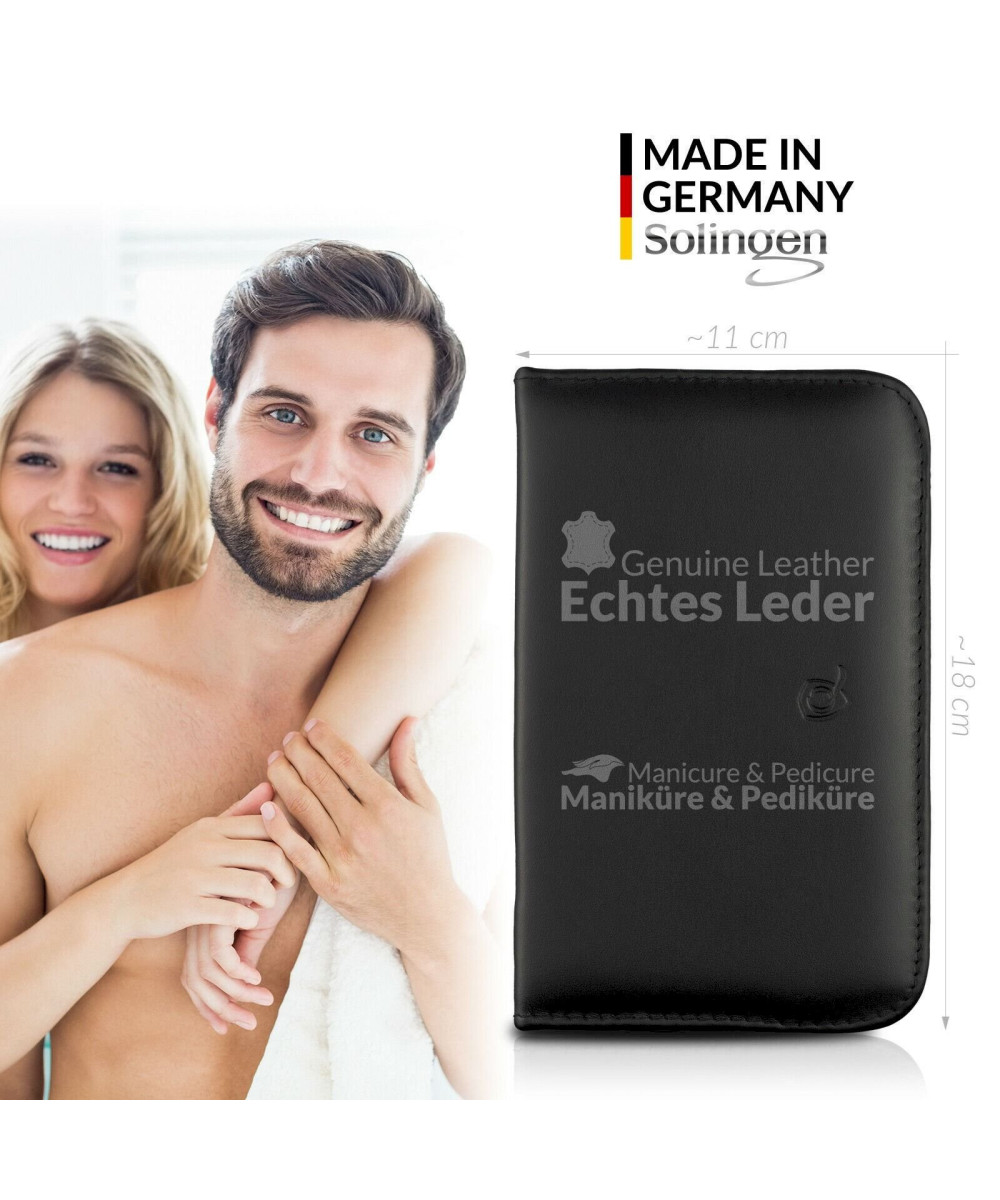 - SCHÖNE NÄGEL mit dem Family Set Nageletui: Das Nagelschere Set enthält echte Nagelscheren aus Solingen - perfekt als Maniküre Set für Damen und Herren! Echt-Leder Etui-Farbe: Schwarz