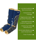 Die Klettverschlüsse an den Beinmanschetten verhindern ein Einschneiden. Mit der stufenlos regulierbaren Massageintensität sowie der Timer-Funktion kannst du die Massagestärke und -dauer wählen, welche dir am besten tut.