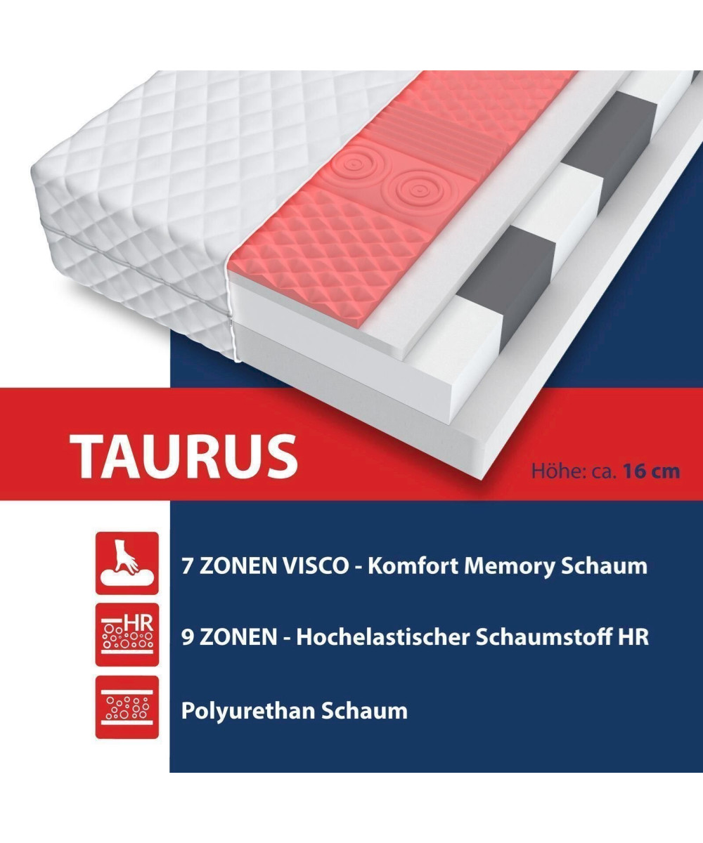 FDM TAURUS-080-180 Matratze 80x180 Kindermatratze Visco Memory Kaltschaum TAURUS 9 Zonen H2 H3 16cm