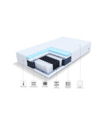 Der Taschenfederkern wird von T25-Polyurethanschaum umgeben, der verformungsresistent ist. Auf einer Seite der Matratze ist hochelastischer HR-Schaum platziert, der aufgrund seiner exzellenten Belüftung Schimmel- und Pilzbildung verhindert und hohen Nutzungskomfort bietet.