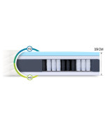 Die Federn unterteilen die Matratze in 7 Zonen, mit jeweils angemessener Unterstützung für einen bestimmten Körperteil. Sie arbeiten voneinander unabhängig, deswegen spüren zwei schlafende Personen keine Unannehmlichkeiten durch gegenseitige Bewegungen. Die Matratze ist für zwei Personen mit unterschiedlichem Körpergewicht geeignet, da sie sich auf der Seite der anderen Person nicht verbiegt. -