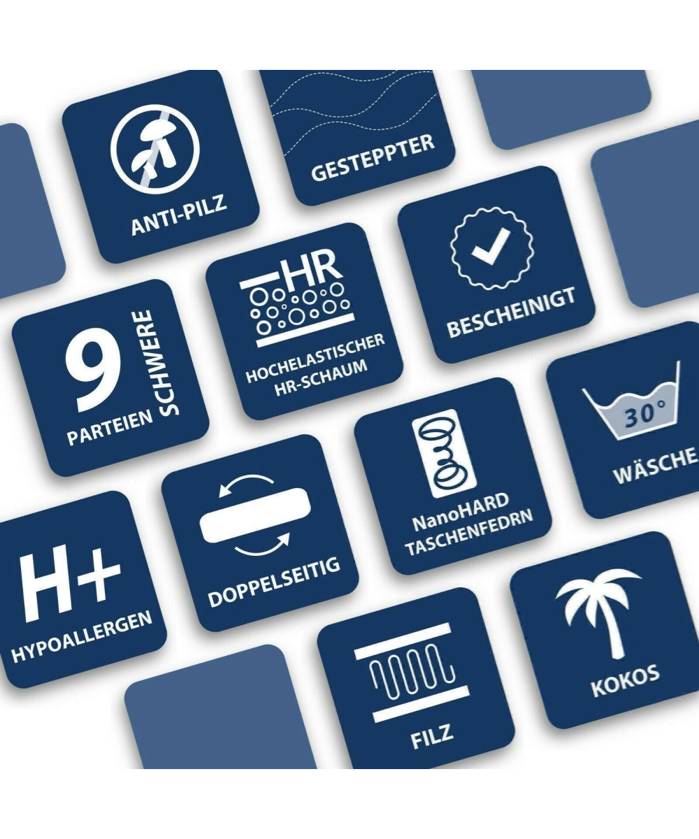 FDM Matratze 160x200 Taschenfederkern Kokos 9 Zonen H3 hochelastisch LAVAL MAX 26cm