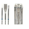 Das dreiteilige Meißelset mit SDS-plus eigent sich für eine Vielzahl an Renovierungs- und Restaurierungsarbeiten in verschiedenen Materialien. Es besteht aus einem Flachmeißel (250 Millimeter Länge, Breite der Meißelschneide 20 Millimeter) , einem Spitzmeißel (250 Millimeter lang) und einem Fliesenmeißel (260 Millimeter lang, Breite der Meißelschneide 40 Millimeter). Diese Meißel sind selbstnachschärfend. Sie weisen eine hohe Materialabtragsrate und verringerte Klemmneigung auf. Der Flachmeißel besitzt eine selbstnachschärfende Verstärkungsrippe, die im Material sowohl seitliche als auch senkrechte Risse erzeugen. Die in sich gedrehte Spitze des Spitzmeißels sorgt für breiten Materialabtrag und weniger Verklemmen. Der angewinkelte Fliesenmeißel ermöglicht das Ausheben von Fliesen ohne Bruch. Dieses Set ist für den Einsatz in Beton, Baustein und Fliesen vorgesehen. Die Meißel dieses Sets können auch in Hämmern mit Drehstopp verwendet werden.