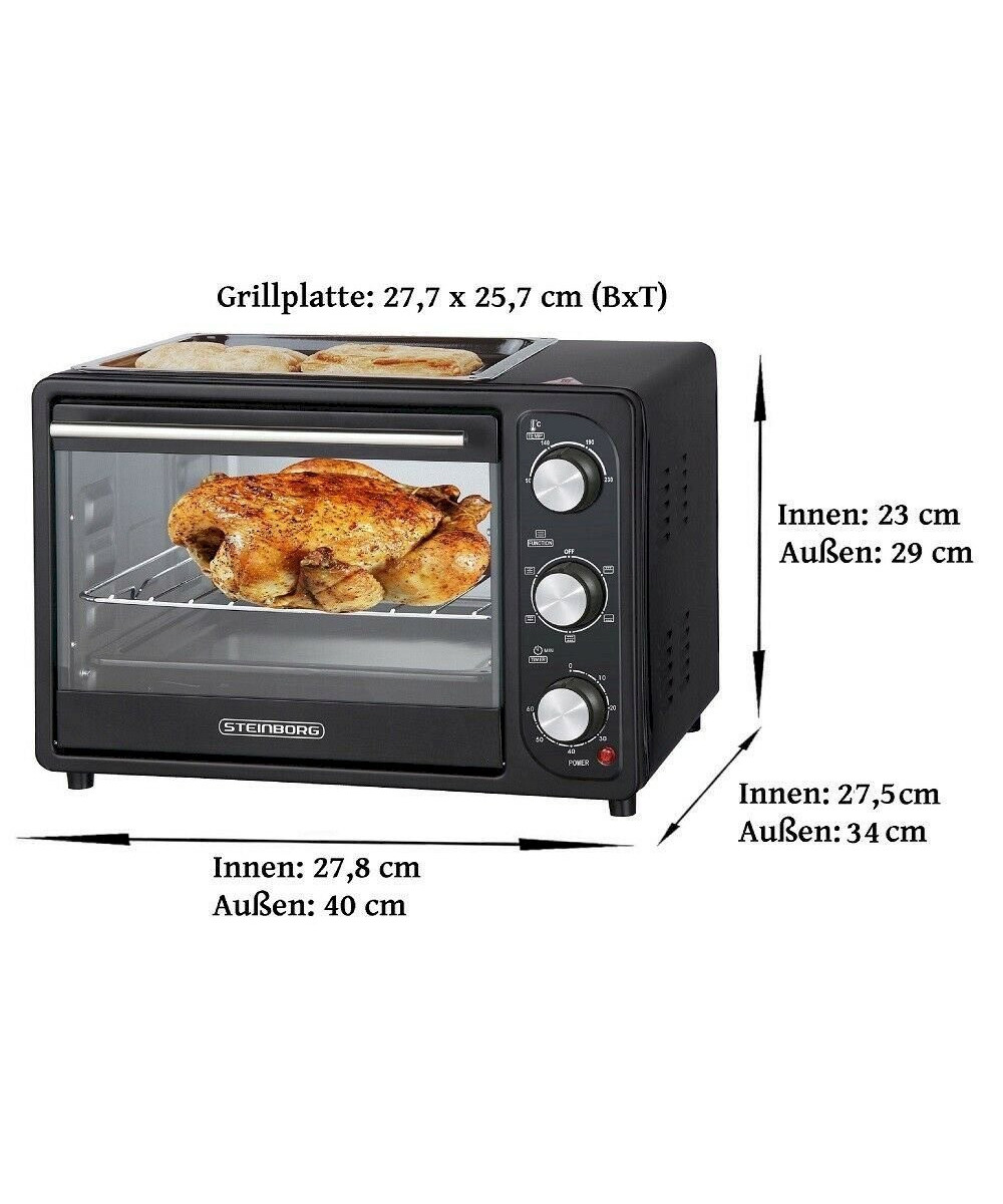 Steinborg SB-3001 Mini Backofen Pizzaofen 3 in 1 Mit Umluft und Grillplatte