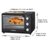 Kompaktes Design, einfache Bedienung, 1300 Watt und viele Extras wie eine abnehmbare, auf dem Backofen aufliegende Grillplatte, Ober- und Unterhitze, Konvektion, eine stufenlose Temperatur-Einstellung und ein eingebauter 60 Minuten Timer zeichnen den Ofen aus.