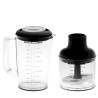 Dies gilt auch für die scharfen Klingen des Zerhackers. Er lässt sich mit einem Adapter ebenfalls leicht am Motorgehäuse des Stabmixers feststecken. Das transparente Mixgefäß ist zudem mit einer Skalierung versehen, sodass Sie den Zerhacker nicht nur zum Zerkleinern von Nüssen und Kräutern verwenden können, sondern auch direkt für die Zubereitung der passenden Menge Pesto, Saucen oder Dips. Zum Schlagen von Sahne oder Aufschäumen von Milch ist der Stabmixer außerdem mit einem Schneebesenaufsatz aus Chrom ausgestattet. Darüber hinaus verfügt er über einen hohen 1 Liter-Krug mit Skalierung und Spritzschutzdeckel, in dem Sie Smoothies, Sahne oder Saucen direkt zubereiten können.