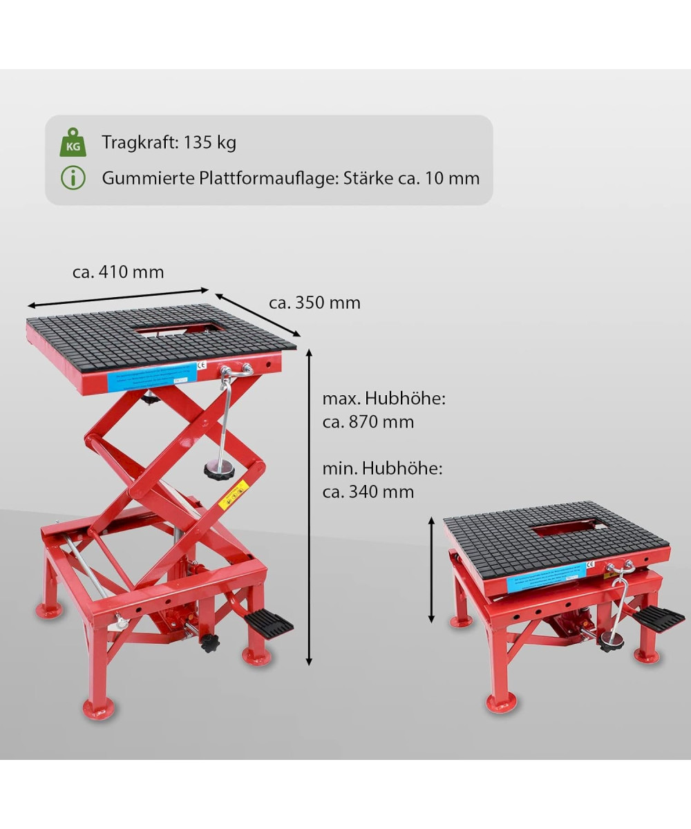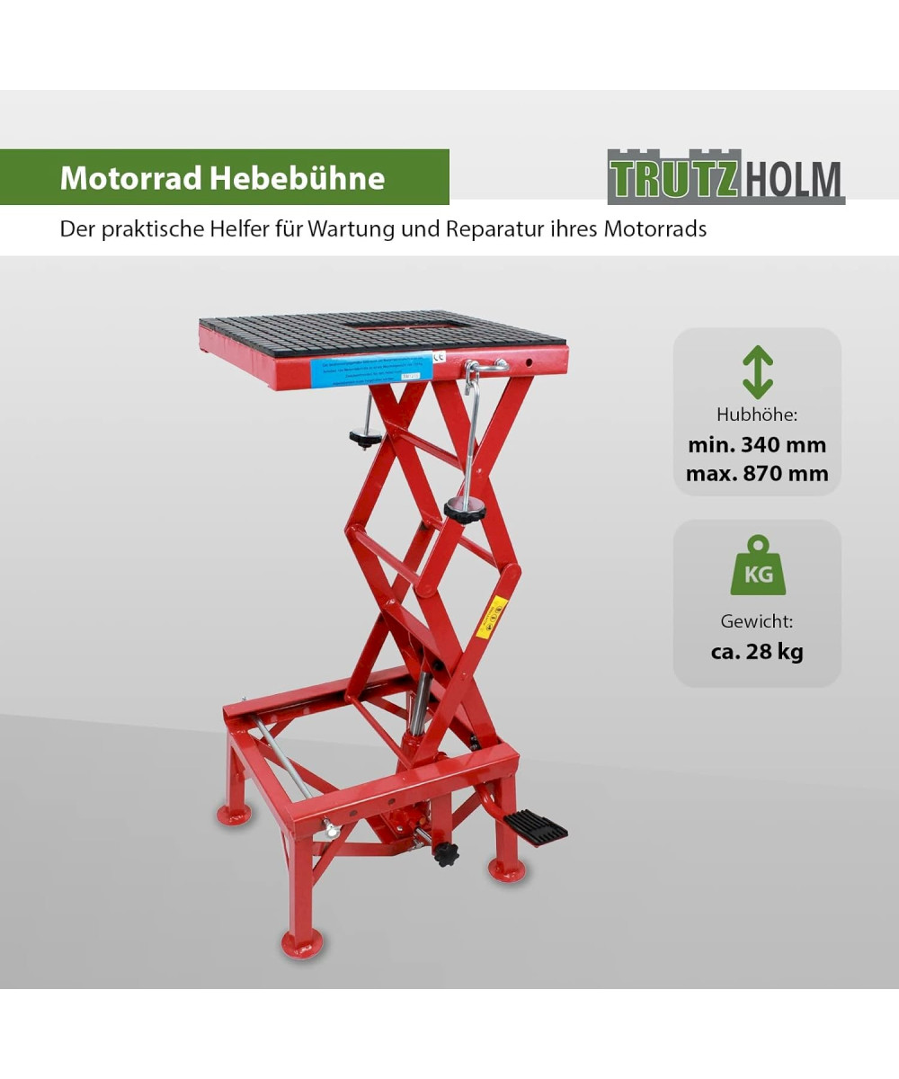 TrutzHolm Motorradheber 135 kg Motorrad Hebebühne 340 - 870 mm Montageständer Montagebock
