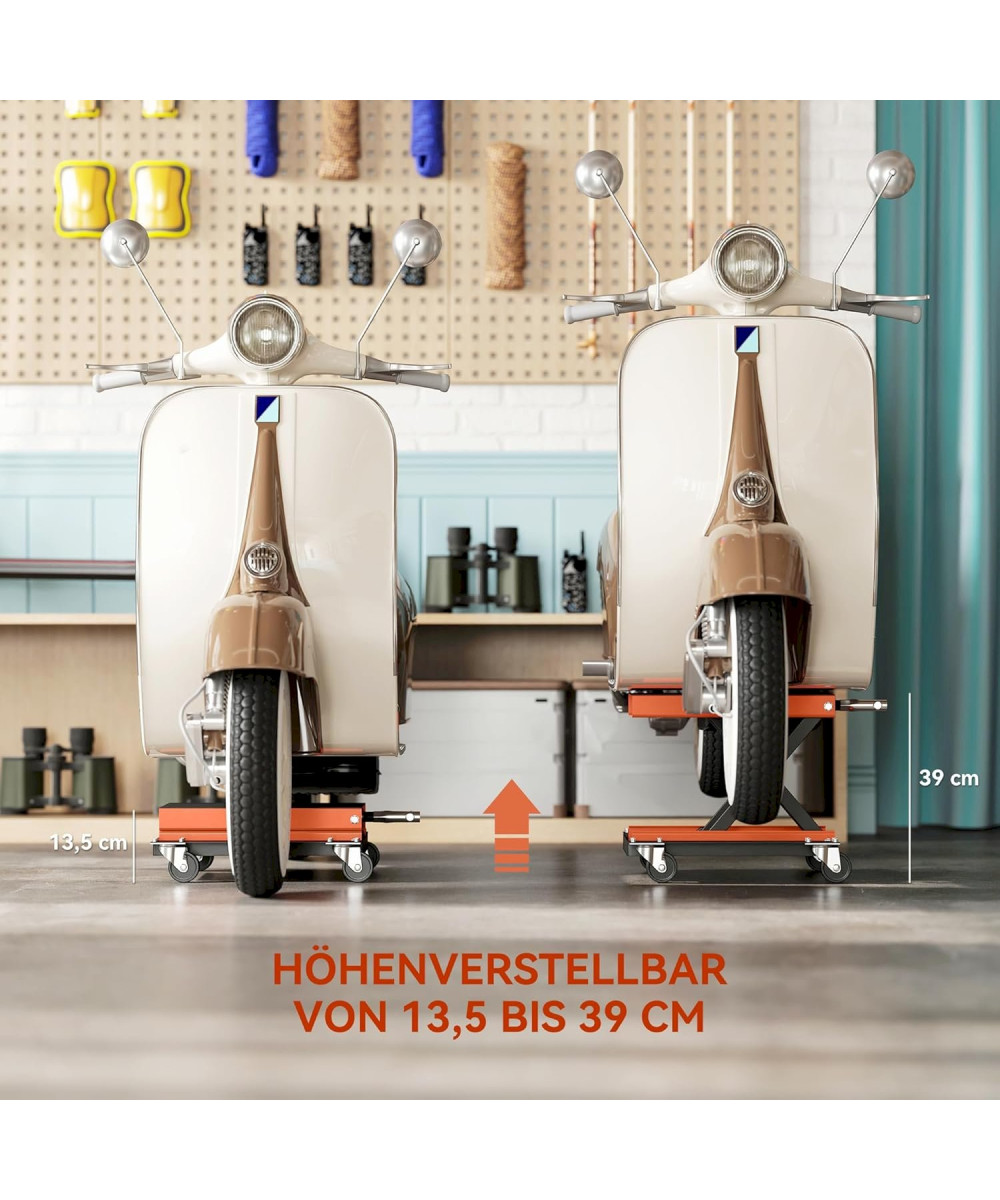HOMCOM Motorradheber 500 kg Belastbar Motorradhebebühne 135-390mm Höhenverstellbar Stahl Orange