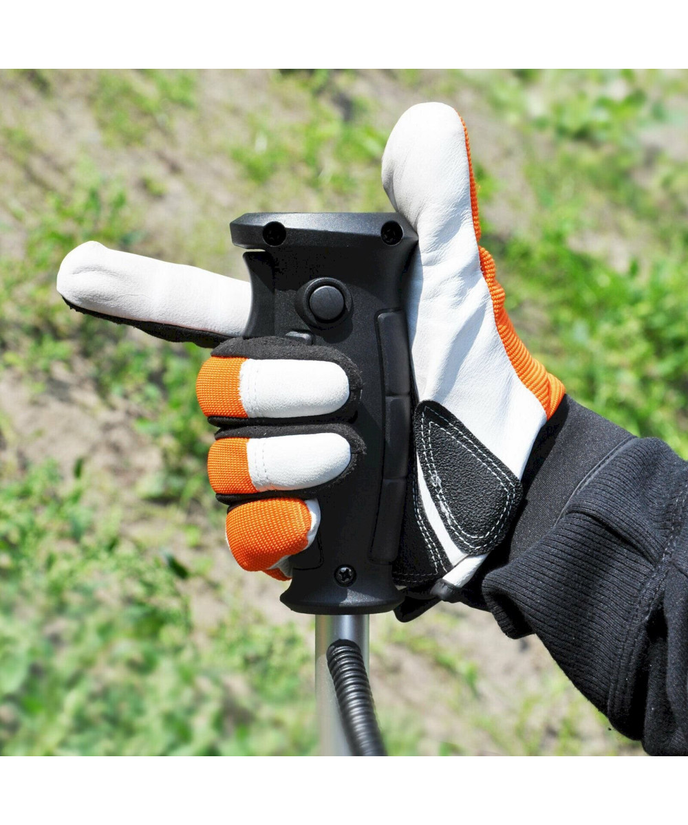Über den verstellbaren Lenkradgriff in Kombination mit dem Tragegurt ist der Elektro Freischneider sehr einfach und komfortabel zu handhaben und wird durch sein Gewicht von 5,0 kg auch bei längeren Arbeitszeiten nicht zur Belastung.