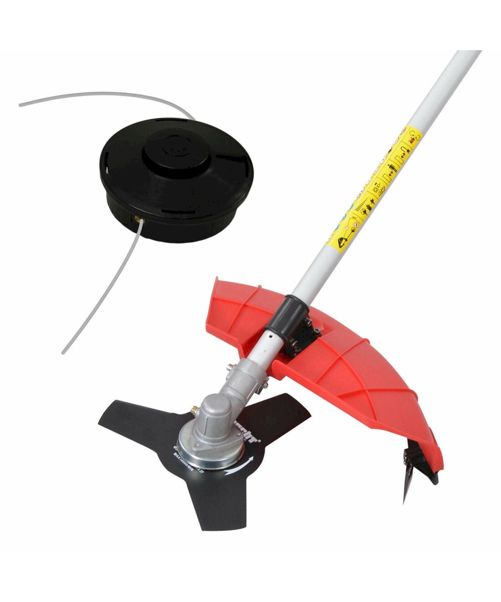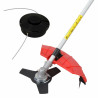 Alternativ kann der Trimmer auch mit einem Zwei-Faden-Schneidsystem betrieben werden. Das im Lieferumfang vorhandene Faden-System wird durch Auftipp-Automatik mit vollautomatischer Fadennachführung gesteuert. Die Fadendicke beträgt 1,6 mm und schneidet mit einer Arbeitsbreite von max. 42 cm.