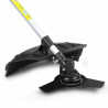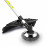 Klein aber fein: Neben einem 3-Zahn-Messer haben wir zusätzlich noch ein speziell gehärtetes 40 Zahn-Sägemesser beigepackt , das Ihnen das Ausasten am Boden oder das Schneiden von Büschen erleichtert sowie eine große Metall-Fugenbürste zur einfachen Entfernung von Unkraut in Fugen. Unser Trimmer-Doppelfadenkopf mit Tippautomatik hat zudem eine spezielle Aufrollfunktion , die Ihnen das Wechseln von Trimmerfaden erheblich vereinfacht.
