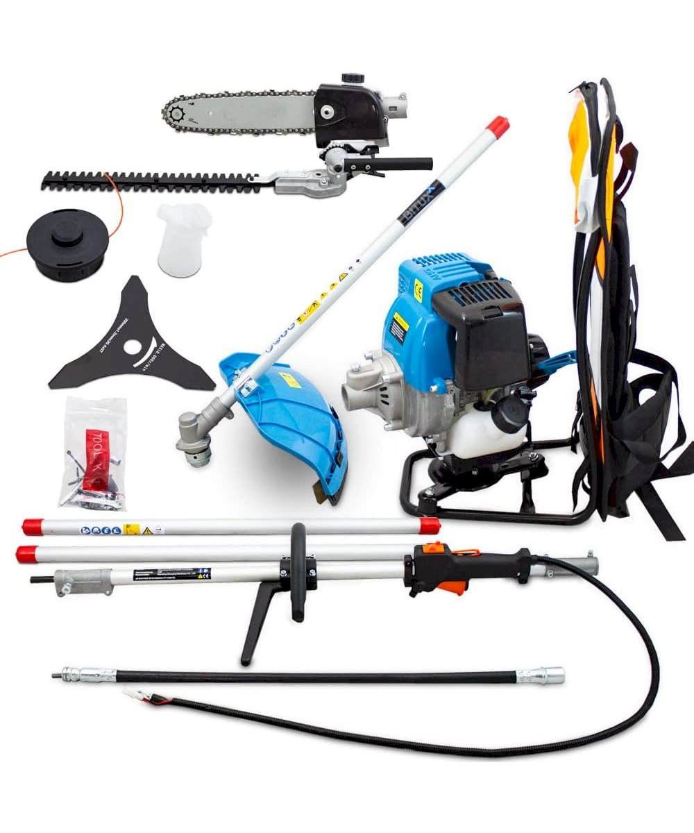 BITUXX Rückentragbare 4in1 Benzin Motorsense Heckenschere Astsäge Rasenschneider