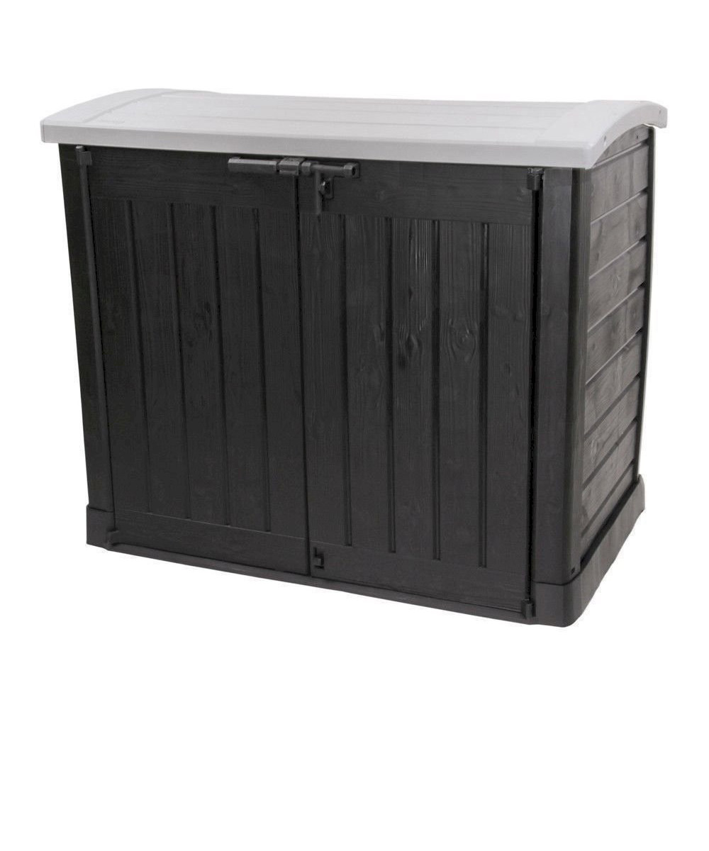 Mit besonderen Funktionen ist die Store-it-out Arc zum Aufbewahren von Mülltonnen perfekt geeignet . Insgesamt lassen sich zwei Mülltonen mit jeweils 240 l Volumen praktisch verstauen. Die abgeschrägte Rampe im Boden macht ein einfaches Abstellen der Mülltonnen möglich. Damit Sie Ihren Müll mühelos entsorgen können, lassen sich die Deckel einhängen , sodass beim Öffnen der Arc beide Mülltonnendeckel mitaufschwingen.