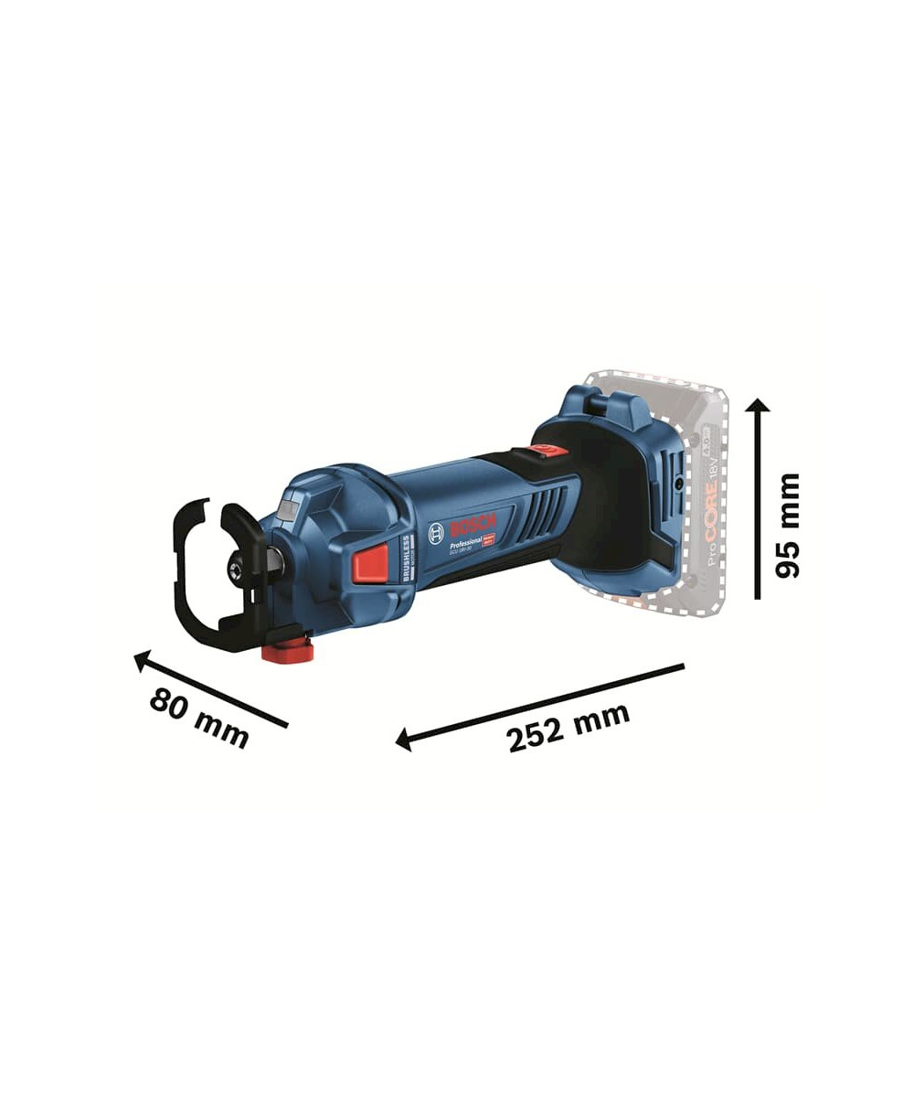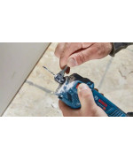Das Werkzeug ist geeignet für bündige Trockenbau-Schnitte nahe Fenstern, Türen, Zugangsplatten und Steckdosen. Sie schneidet auch Sperrholz, OSB und Deckenplatten, und ist kompatibel mit Spannzangen der Größen 3 mm, 6 mm, 1/8'', 5/32'', und 1/4''. Kompatibel mit dem Bosch Professional 18V System und mit der markenübergreifenden AMPShare Akku Allianz.