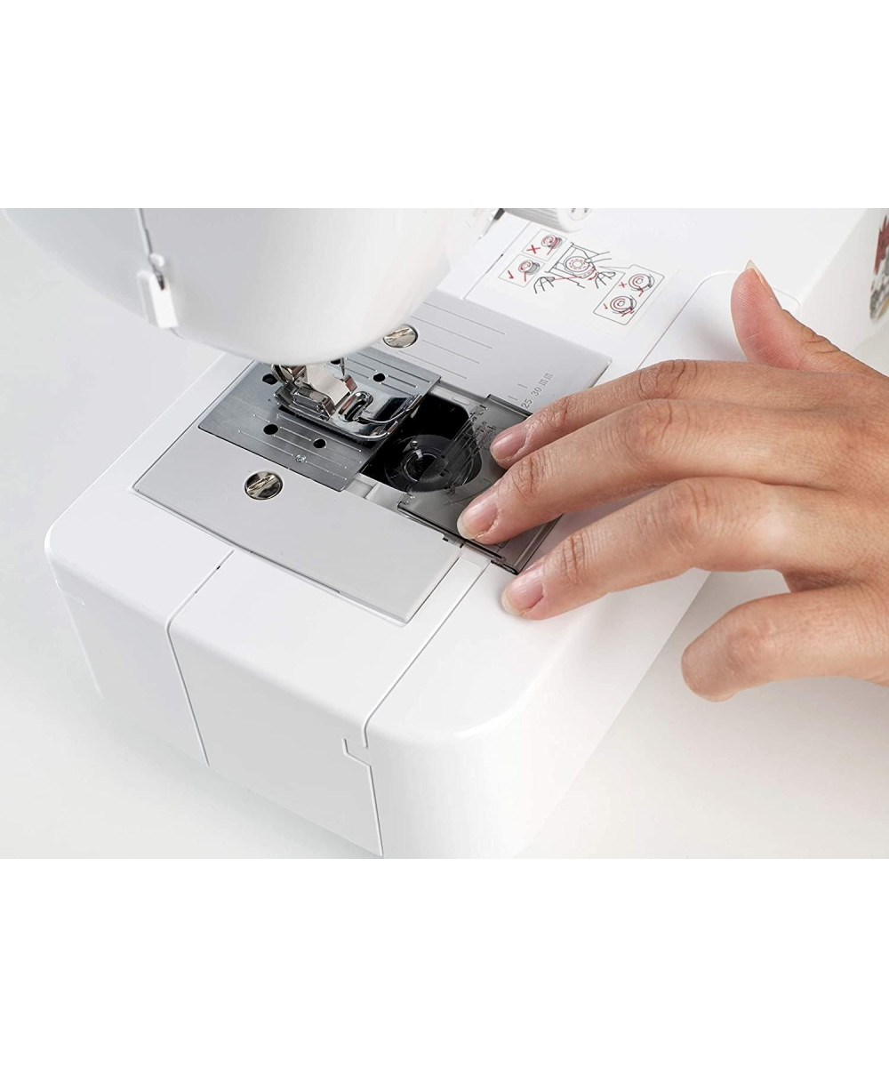 Brother JX17FE wird auch in den kleinsten Details gepflegt : von der durchsichtigen Abdeckung der Spule , die es Ihnen ermöglicht, den Fadenstand der Spule im Auge zu behalten, wodurch vermieden wird, ohne oder mit zu wenig Unterfaden zu nähen, bis hin zur Funktionalität des freistehenden Arms , mit dem perfekte, Rundnähte an Hosenbeinen und an T-Shirt-Ärmeln ausgeführt werden können. Dank der automatischen Spindel wird die Spule schnell aufgewickelt.