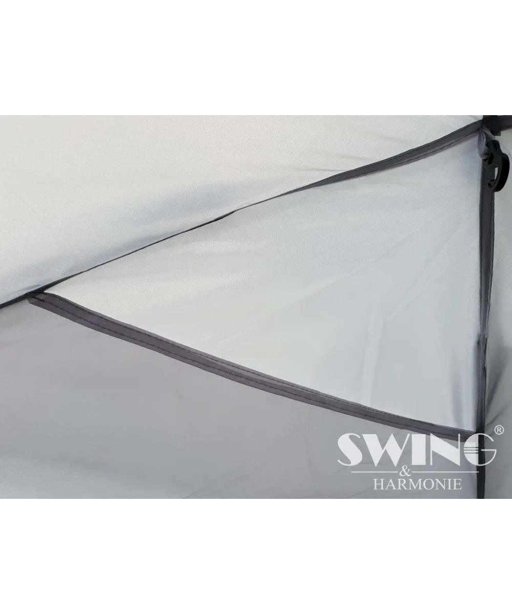 Der LED - Event Pavillon "DomeShelter" von Swing&Harmonie® besticht durch sein modernes Design und kann mit wenigen Handgriffen schnell und einfach aufgestellt werden. Die LED-Beleuchtung, besteht aus 96 LED's und kann einfach per Hand ein und ausgeschaltet werden. Das mitgelieferte Solarmodul lädt den integrierten Akku tagsüber auf.
