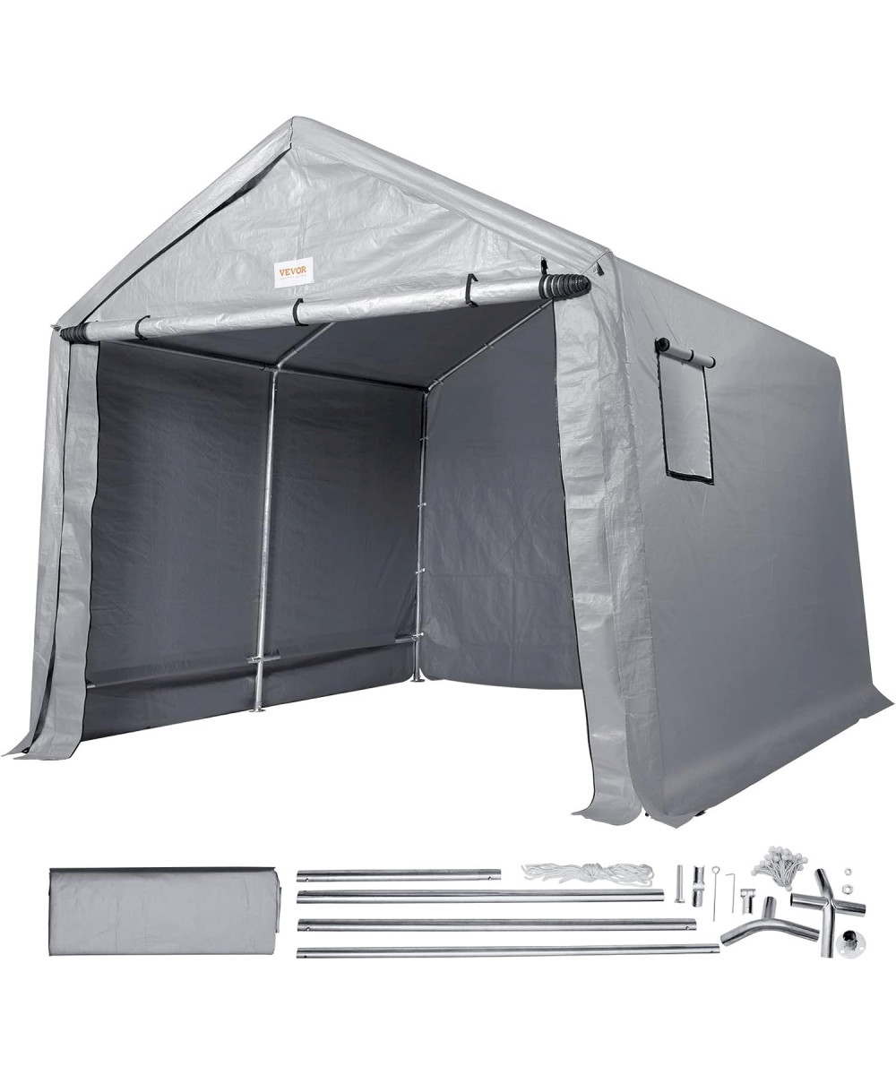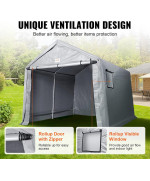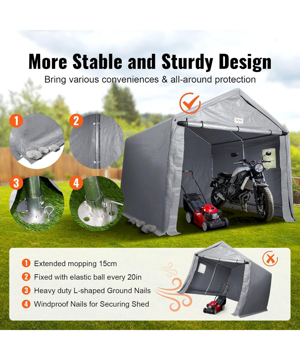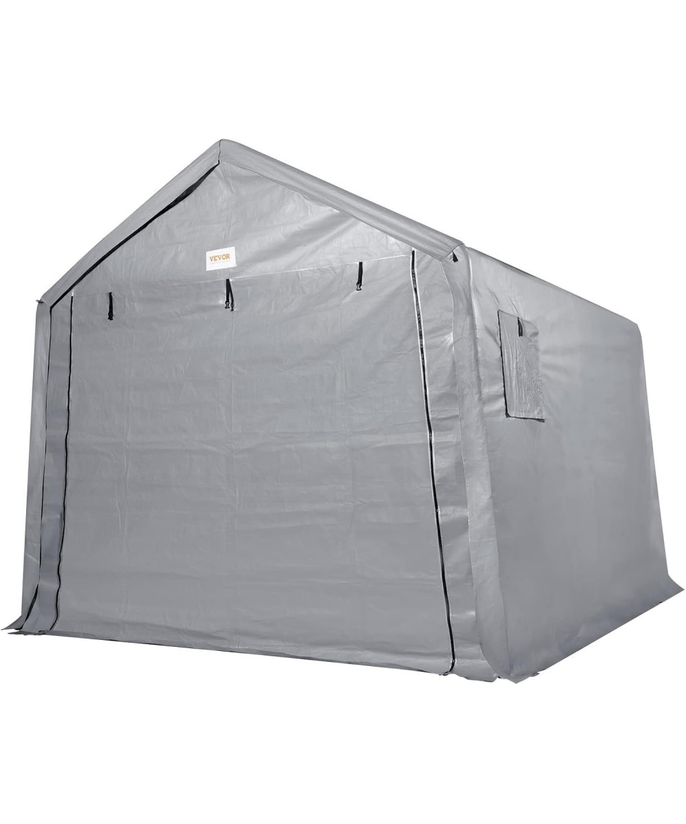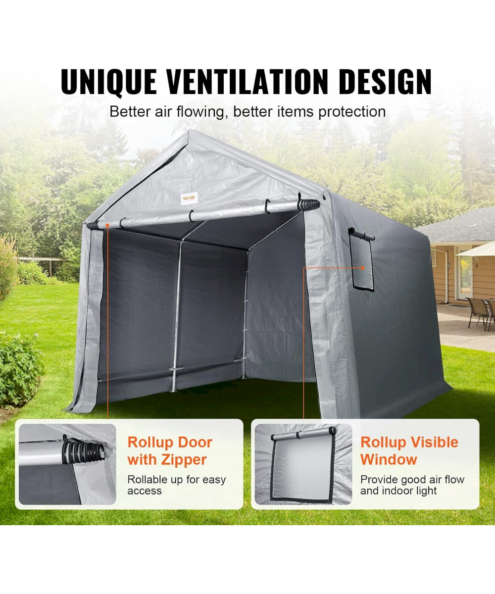 Das VEVOR-Lagerzelt besteht aus doppelt beschichtetem PE-Material! Mit reißfesten und lichtbeständigen Eigenschaften halten die Lagerschuppen allem stand, von Regen und Schnee bis hin zu Wind und Staub. Darüber hinaus sorgt die um 15 cm verlängerte Wischabdeckung für zusätzliche Stabilität beim Laden schwerer Gegenstände und schützt Ihr Hab und Gut vor schlechtem Wetter. - Bessere Belüftung, besserer Schutz