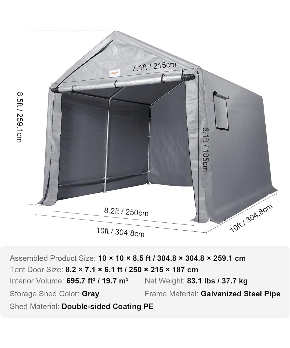 Zeltgarage 304,8 x 304,8 x 259,1 cm Gerätezelt mit verzinkten Stahlstangen und dreischichtigen 240G-PE-Abdeckung