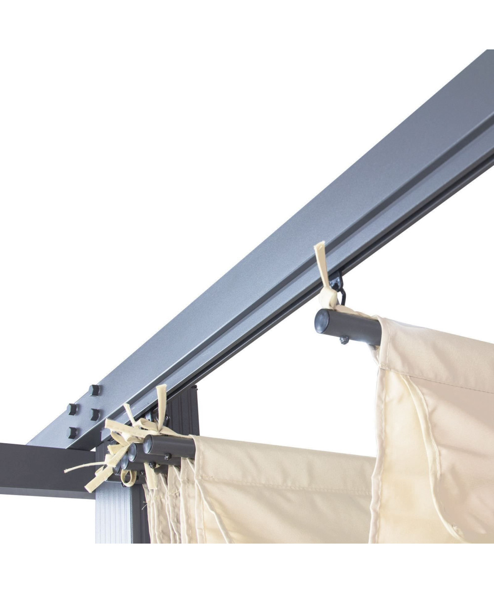 Einfache Montage, hochwertige Materialien und saubere Verarbeitung sichern Ihnen lange Freude an Ihrer Pergola zu. Tagsüber schützt Sie das das Dach vor allzu großer Sonne und abends vor der Kälte von oben. Falls Sie dennoch mal freie Sicht zum Himmel wünschen - einfach die komplette Dachbespannung per Seilzug aufschieben.